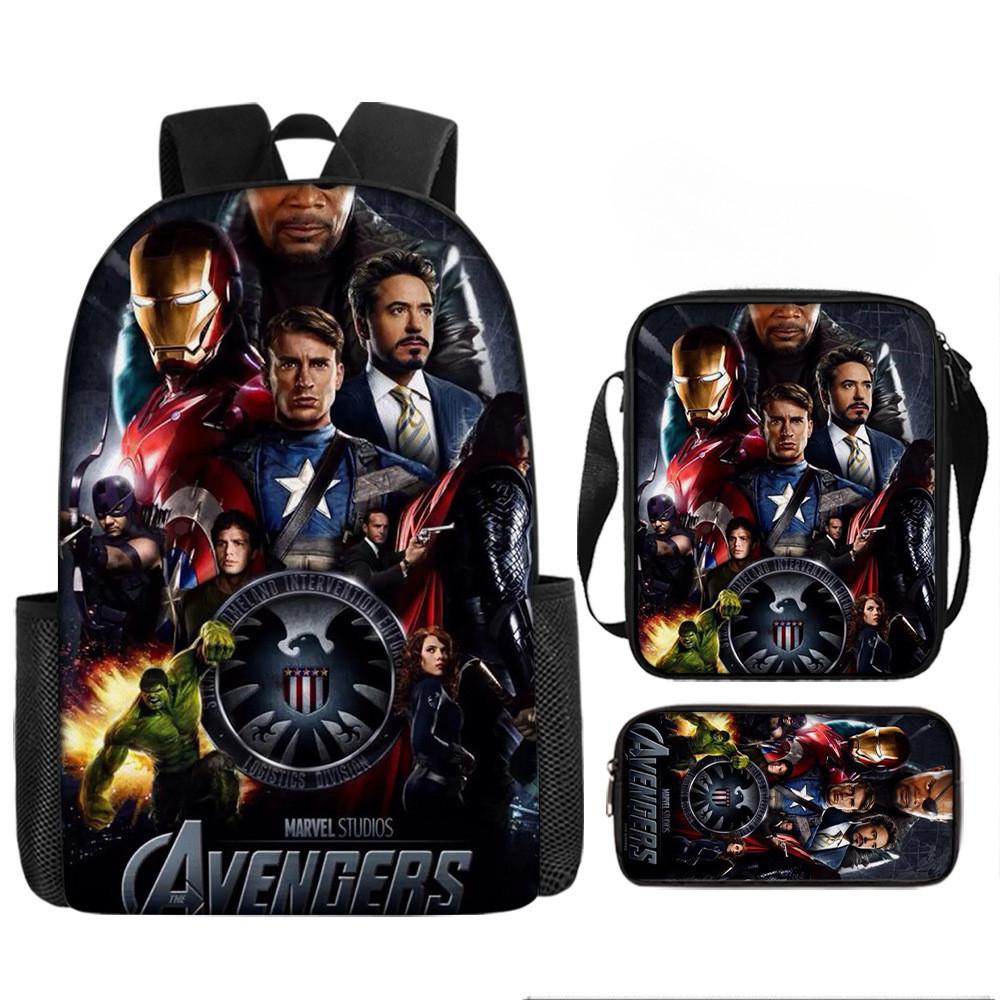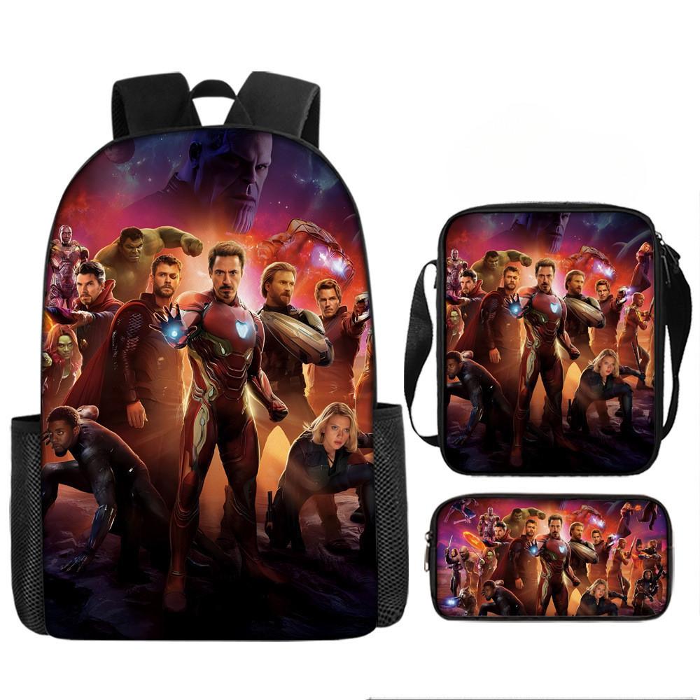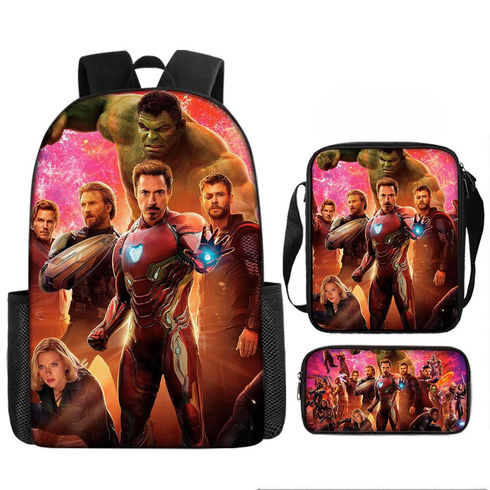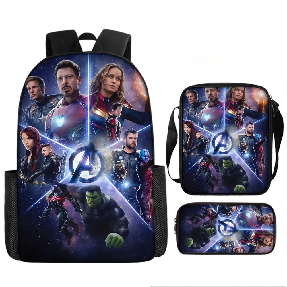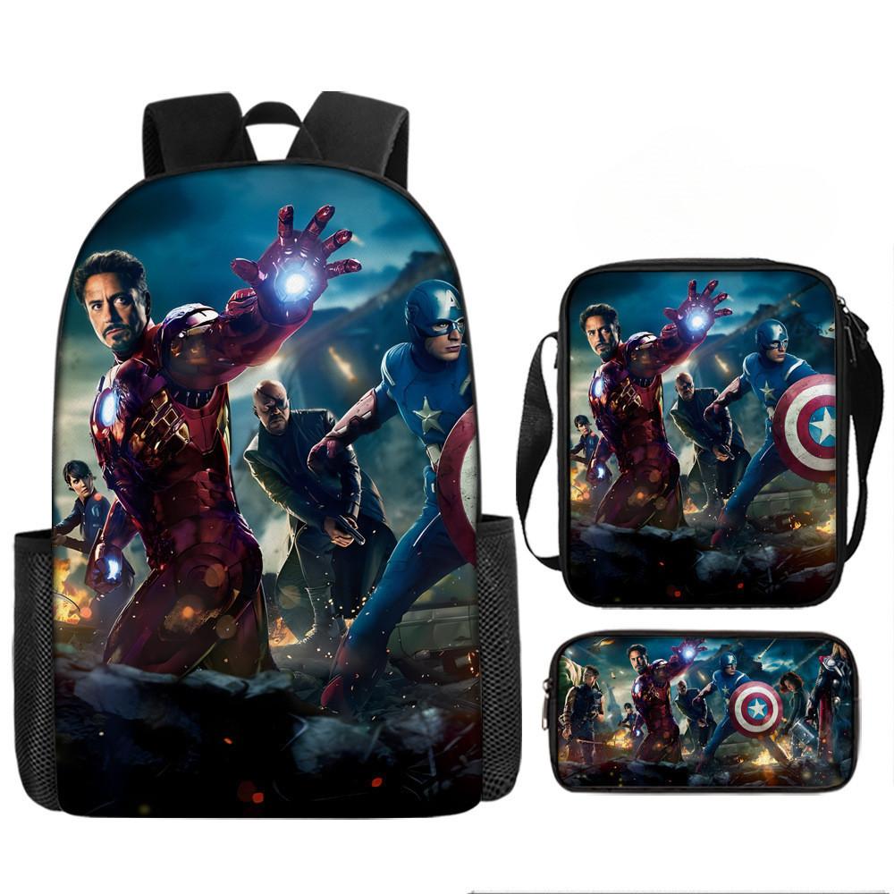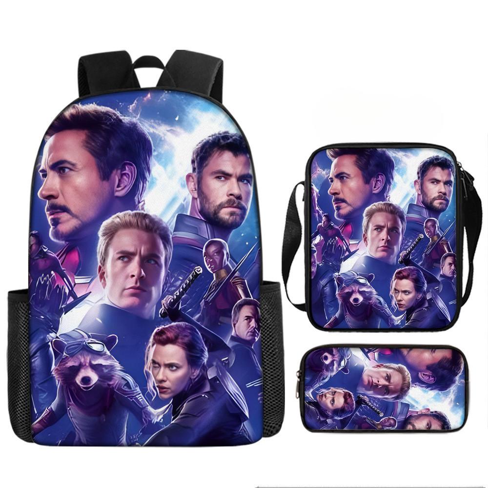 Набор рюкзаков на тему «Мстители» разработан для учеников начальной школы, предлагая практичное и стильное решение для повседневного использования.. Этот набор из трех предметов включает 17-дюймовый рюкзак, сумку через плечо и пенал, все изготовленные из прочной ткани Оксфорд с полиэстеровой подкладкой.. Легкая конструкция обеспечивает удобство переноски, а дышащий дизайн и мягкие плечевые лямки обеспечивают повышенный комфорт при длительном ношении.. Этот набор с яркими 3D цифровыми принтами и узорами в стиле мультфильмов сочетает в себе функциональность и игривую эстетику.