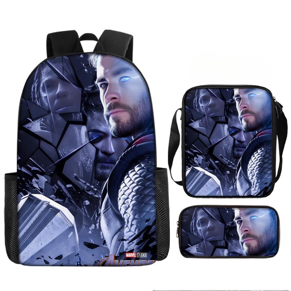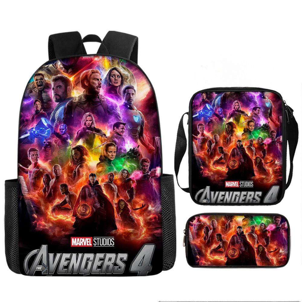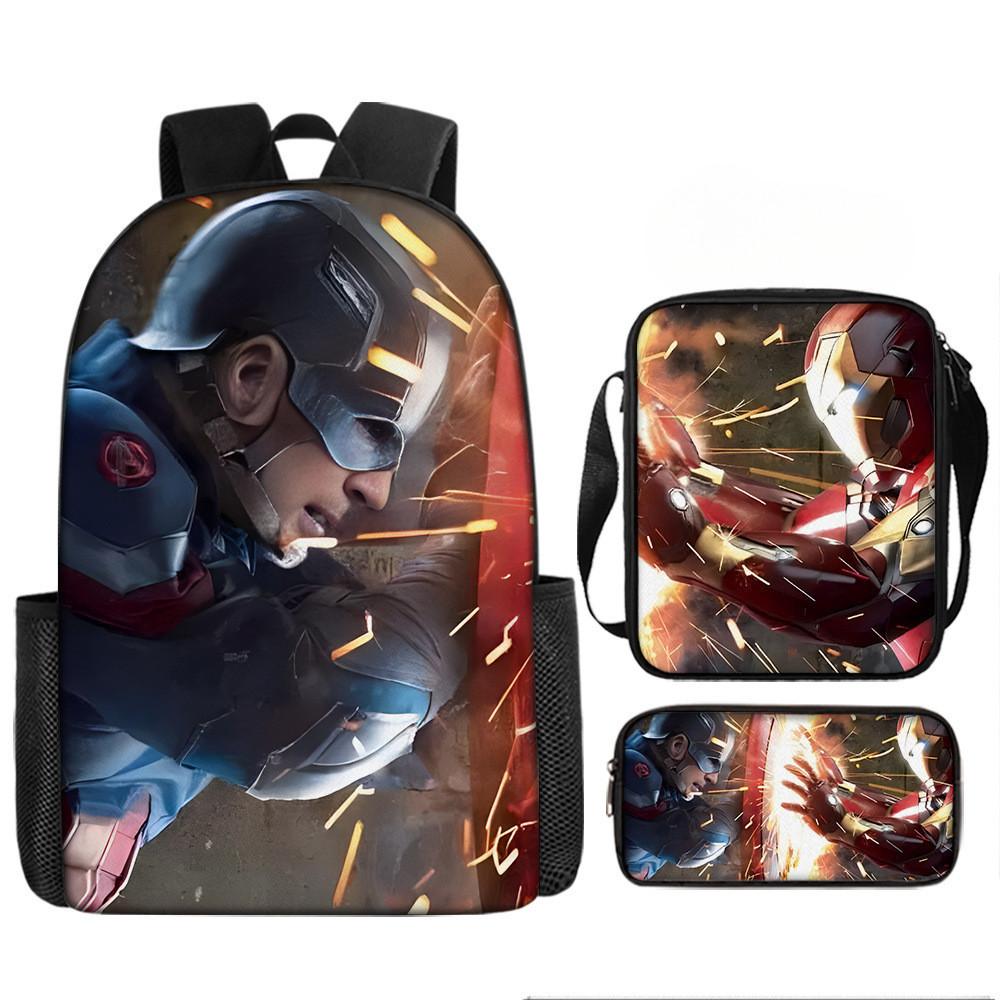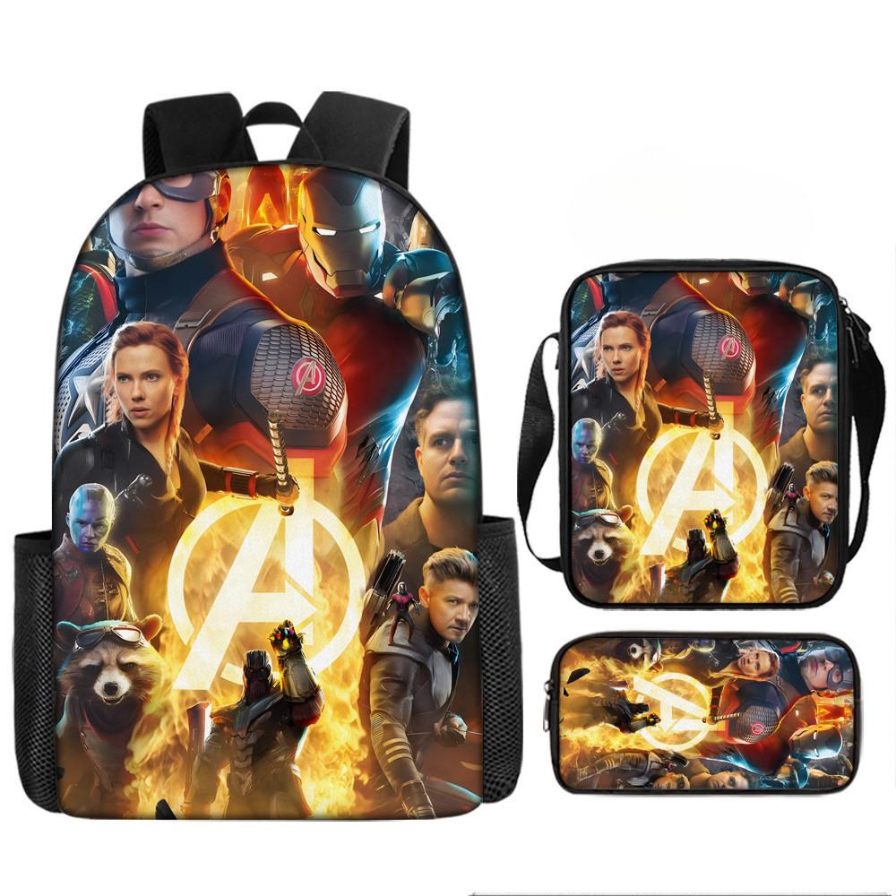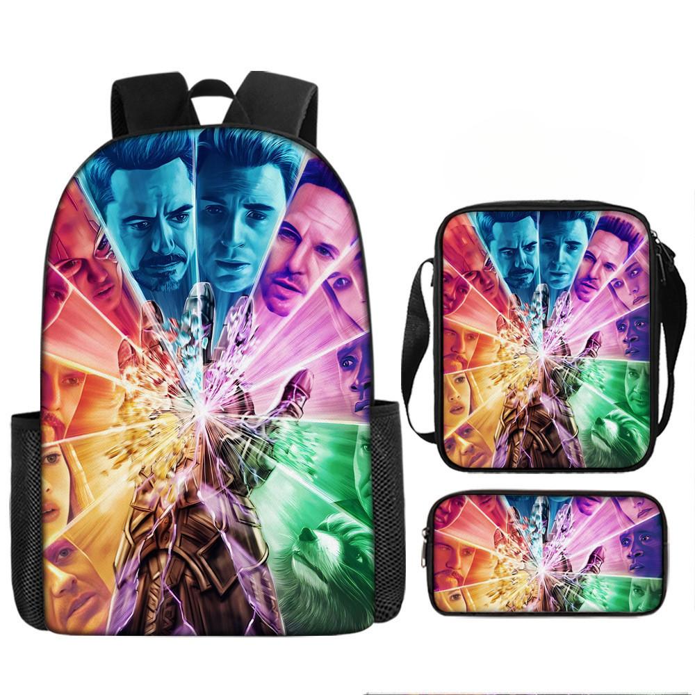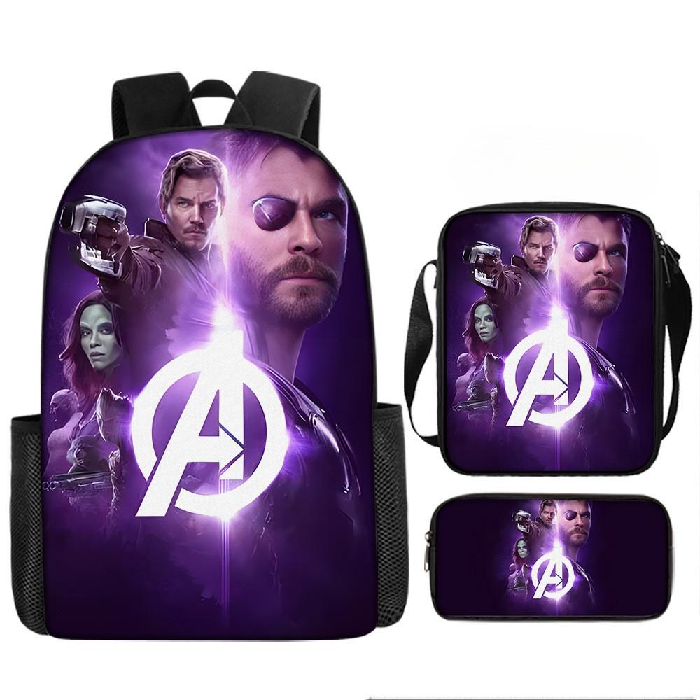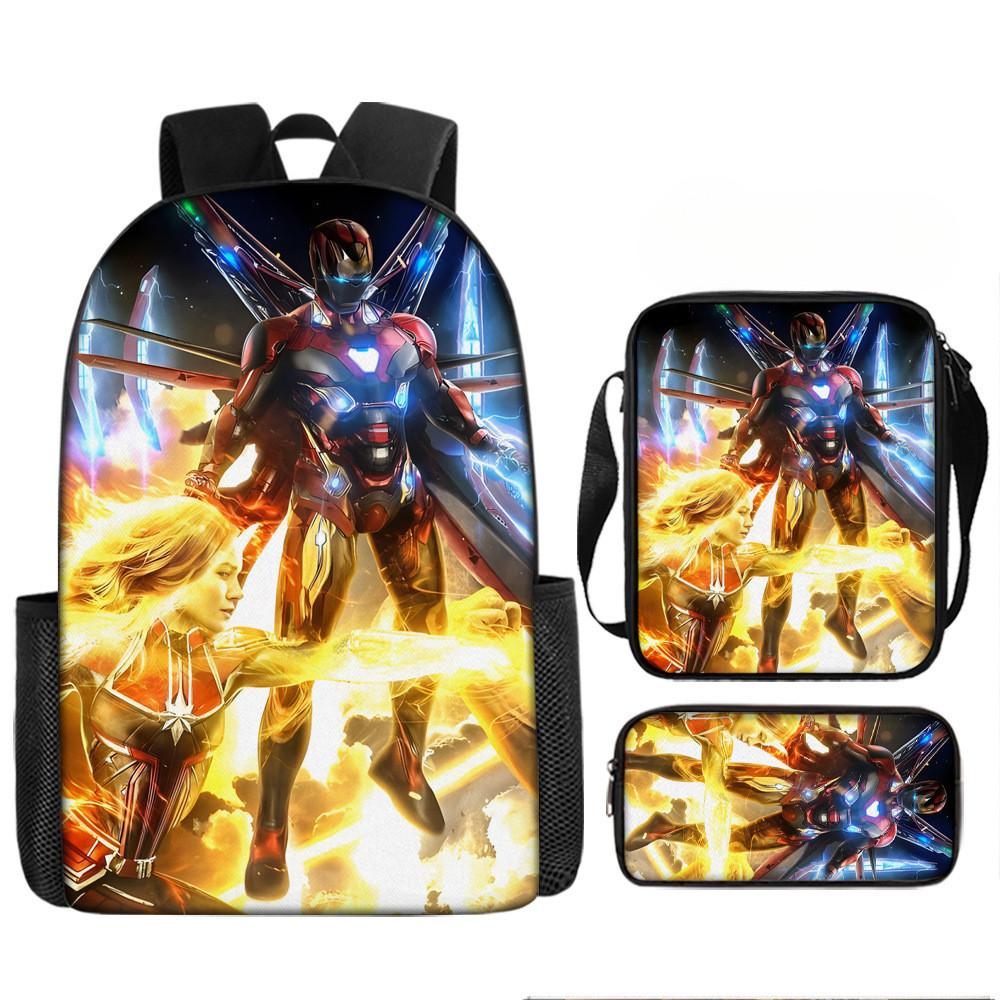 Набор рюкзаков на тему «Мстители» разработан для учеников начальной школы, предлагая практичное и стильное решение для повседневного использования.. Этот набор из трех предметов включает 17-дюймовый рюкзак, сумку через плечо и пенал, все изготовленные из прочной ткани Оксфорд с полиэстеровой подкладкой.. Легкая конструкция обеспечивает удобство переноски, а дышащий дизайн и мягкие плечевые лямки обеспечивают повышенный комфорт при длительном ношении.. Этот набор с яркими 3D цифровыми принтами и узорами в стиле мультфильмов сочетает в себе функциональность и игривую эстетику.