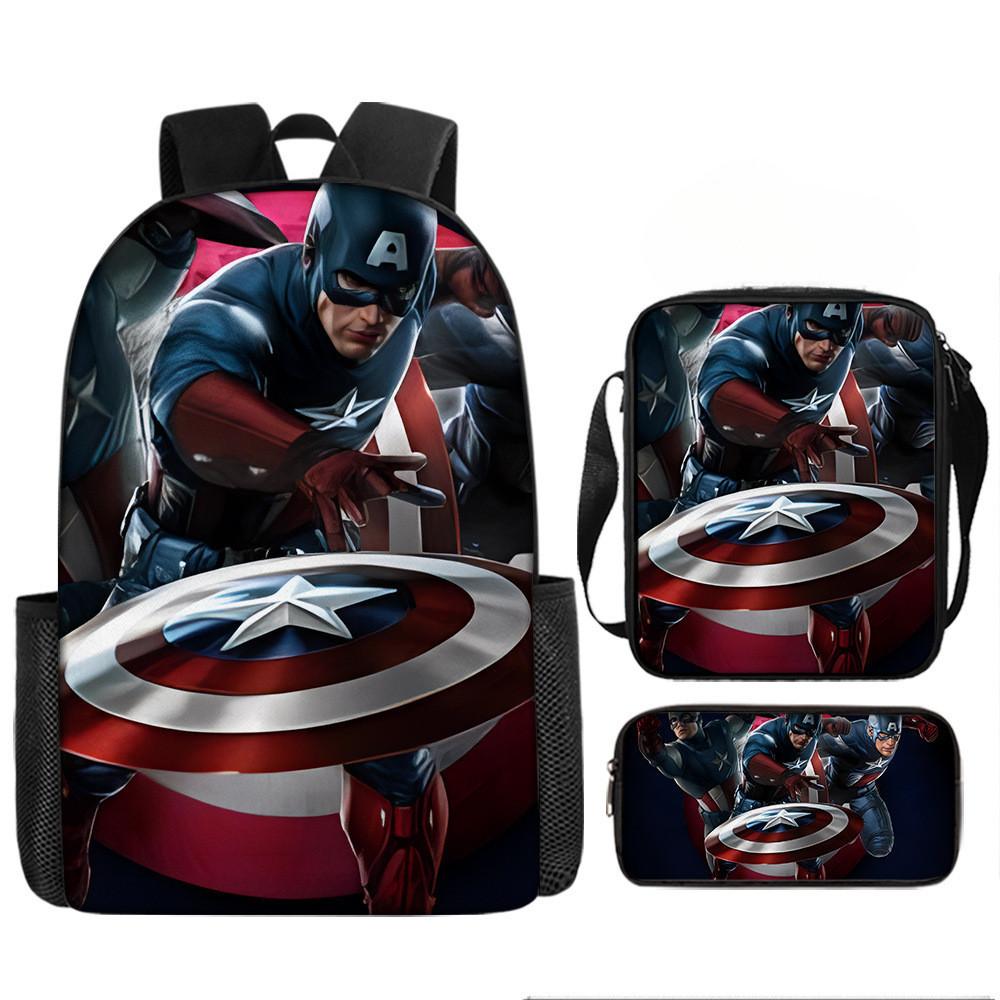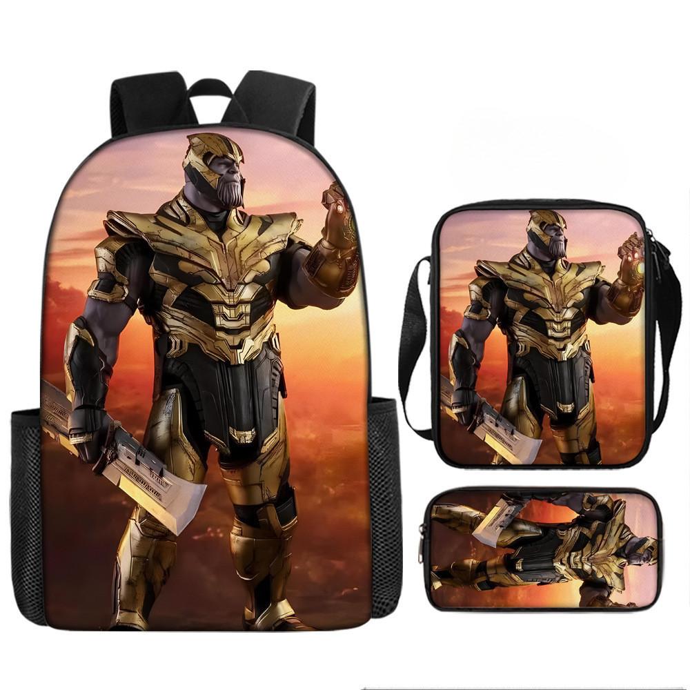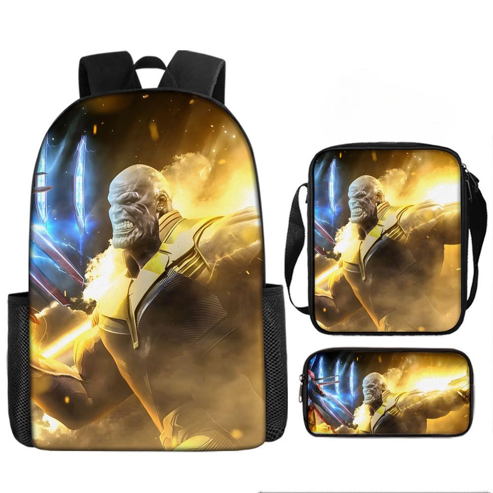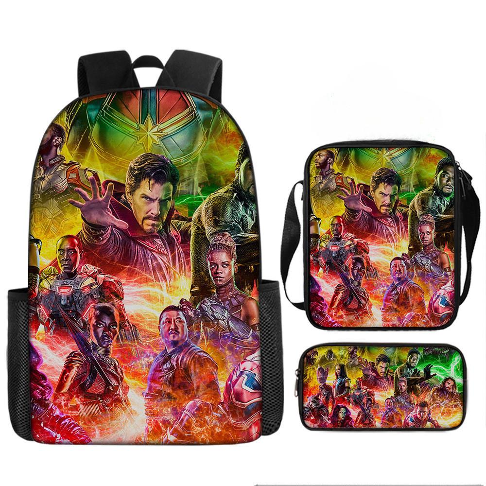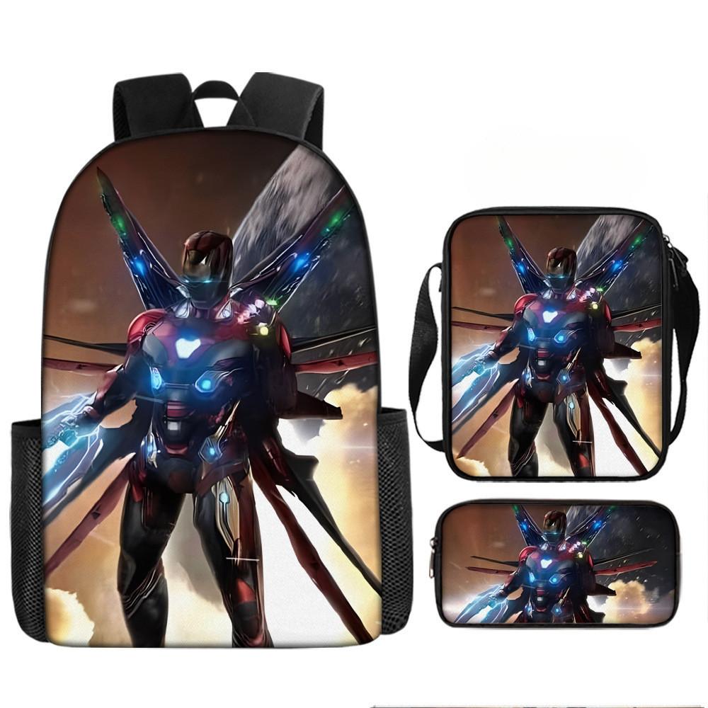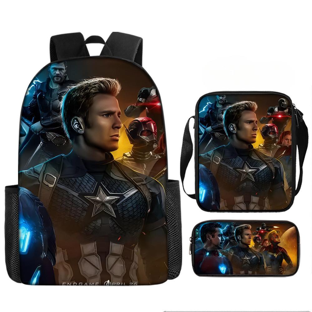 Набор рюкзаков на тему «Мстители» разработан для учеников начальной школы, предлагая практичное и стильное решение для повседневного использования.. Этот набор из трех предметов включает 17-дюймовый рюкзак, сумку через плечо и пенал, все изготовленные из прочной ткани Оксфорд с полиэстеровой подкладкой.. Легкая конструкция обеспечивает удобство переноски, а дышащий дизайн и мягкие плечевые лямки обеспечивают повышенный комфорт при длительном ношении.. Этот набор с яркими 3D цифровыми принтами и узорами в стиле мультфильмов сочетает в себе функциональность и игривую эстетику.
