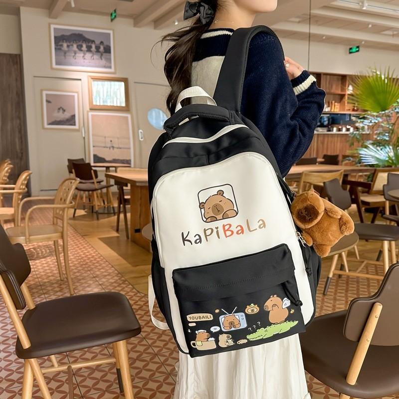 Cartoon Capybara Pattern Backpack Large Capacity Shoulders Bag Gift Children