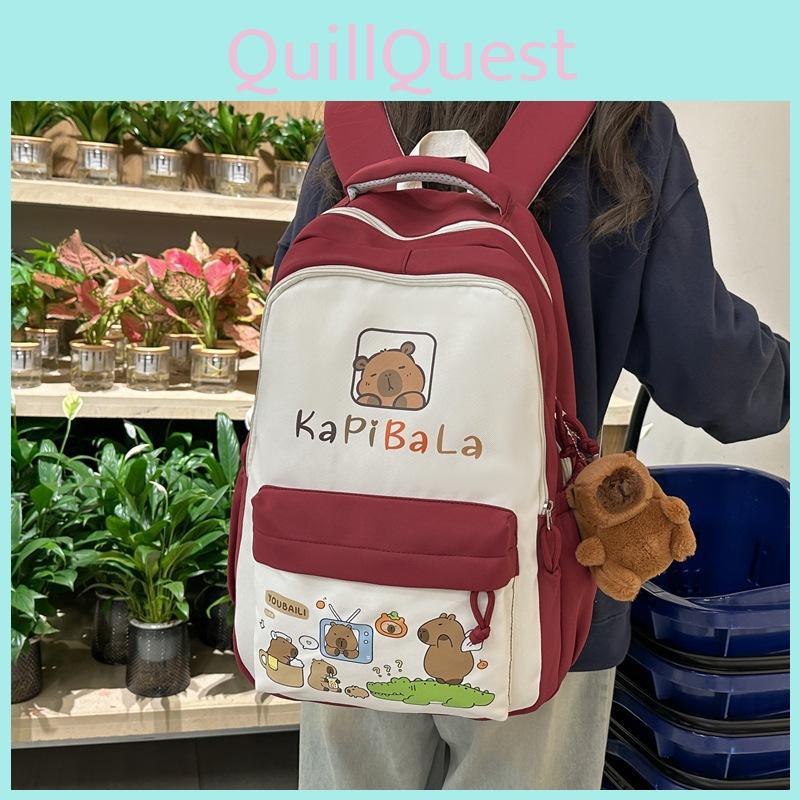 The Cute Capybara Backpack combines urban simplicity with practical functionality, making it an ideal choice for middle and high school students. Crafted from durable nylon with a polyester lining, this backpack ensures long-lasting use while maintaining a lightweight design. Its breathable construction and cushioned shoulder straps provide enhanced comfort, even during extended wear. Available in a range of colors including black, red, purple, green, and pink, it suits various style preferences and is designed for both genders.