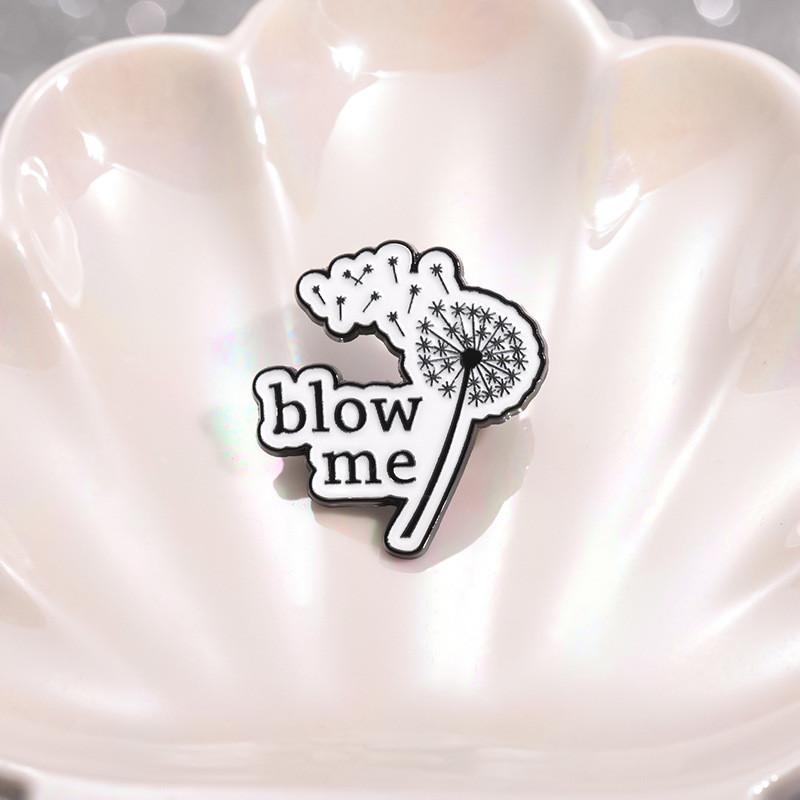 Уникальный дизайн: Этот черно-белый эмалевый значок с одуванчиком и причудливым текстом «Bloe Me» станет ярким аксессуаром для всех, кто хочет выразить свою индивидуальность.