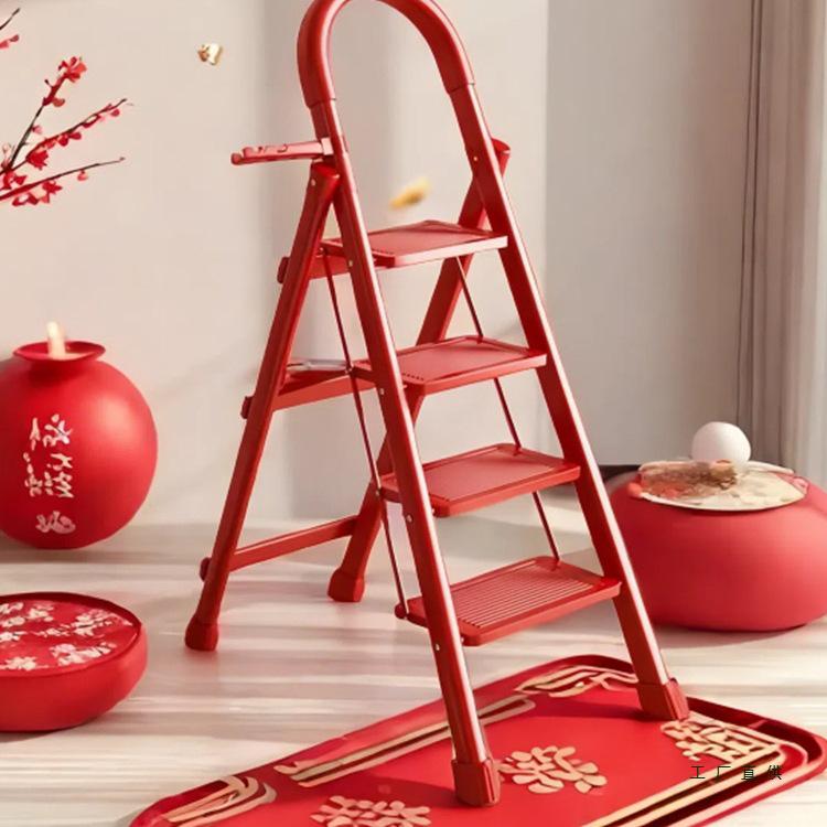 Red Festive Folding Telescopic A-Frame Ladder Stool: Indoor & Outdoor Use — купить товар онлайн с бесплатной доставкой по всему миру!