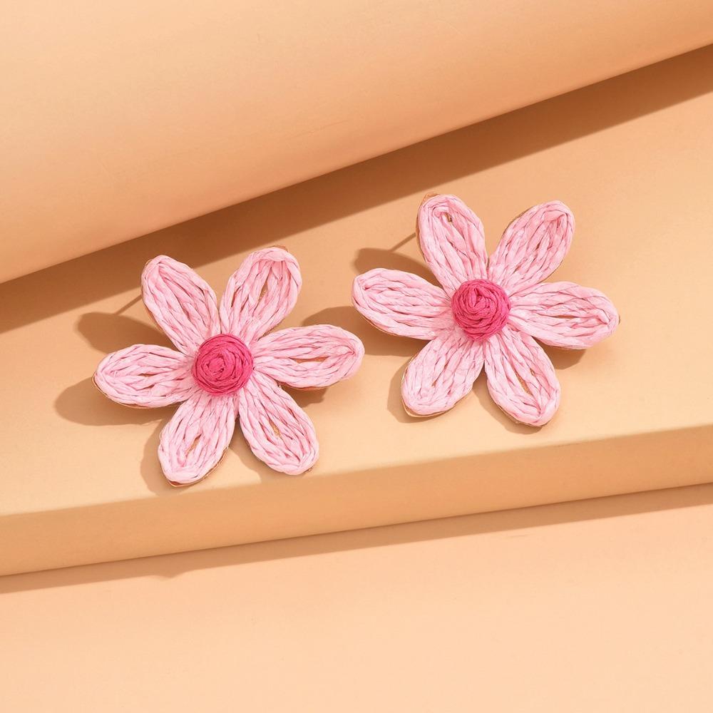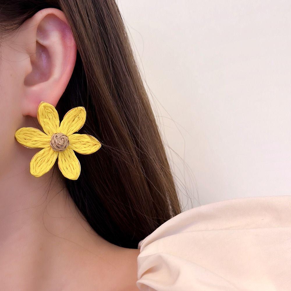 Ethnic Style Sunflower Earrings Raffia Flower Stud Earrings Sweet Weaved Ear Accessories Lady