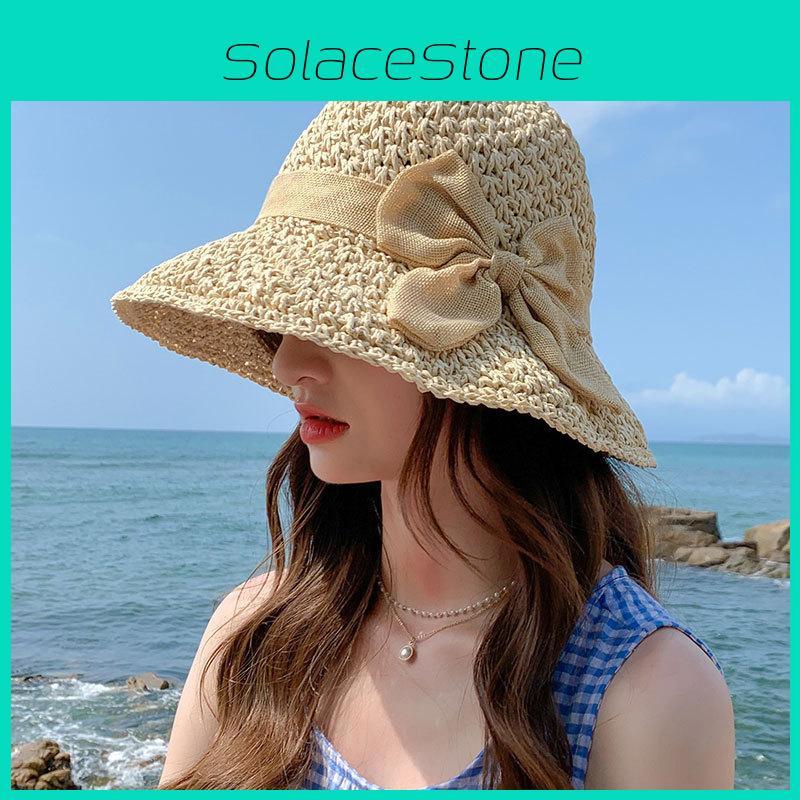 Женская универсальная соломенная шляпа с широкими полями для защиты от солнца с элегантным узлом-бантом