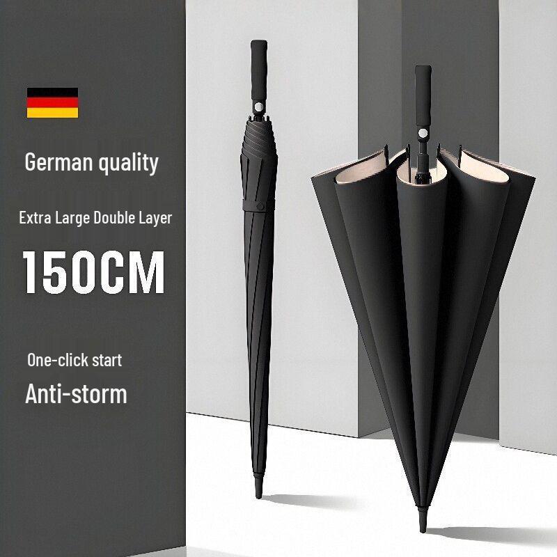 Мужской очень большой двухслойный зонт с длинной усиленной ручкой для двух или трех человек, штормоустойчивый и прочный.