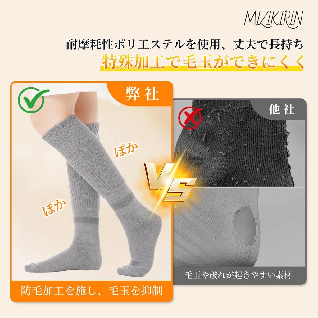 [Новое влагопоглощающее, теплогенерирующее волокно для повышенного тепла] Мы стремились создать носки, которые согревают с момента надевания. MIZIKIRIN использует новое влагопоглощающее, теплогенерирующее волокно. Он снижает теплопотери на 15% по сравнению с шерстью, эффективно удерживая тепло и эффективно поглощая естественное тепло от пота и влаги в ногах, усиливая тепло.. Кроме того, внутренняя часть носков выполнена из тонкого флисового материала, эффективно предотвращающего проникновение холодного воздуха и потерю тепла, обеспечивая комфорт даже при длительном ношении.. Идеально для сохранения тепла осенью и зимой.