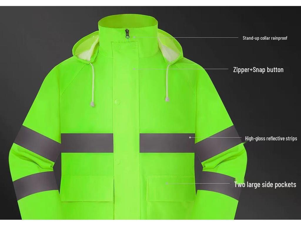 Оставайтесь защищенными и видимыми в любую погоду с этим светоотражающим комплектом дождевика и брюк.. Разработанный специально для патрулей дорожного движения и санитарной службы, этот высокоэффективный комплект является водонепроницаемым и дышащим, обеспечивая комфорт на протяжении всей вашей смены.. Светоотражающие полосы обеспечивают отличную видимость в условиях низкой освещенности и в дождливую погоду, повышая безопасность на работе.. Регулируемый капюшон и манжеты обеспечивают надежную посадку, а прочный материал выдерживает суровые условия.. Идеально для профессионалов, которым нужна надежная защита от непогоды.