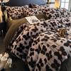 Premium Leopard Print Velvet Fleece 4-Piece Set: Winter Stain-Resistant, Double-Sided Coral Fleece, Warm Duvet Cover Bed