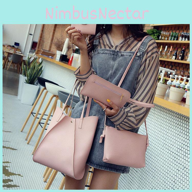 4 шт. Кожаная женская сумочка, женская сумка через плечо, сумка-тоут, кошелек, набор мессенджеров, сатчел