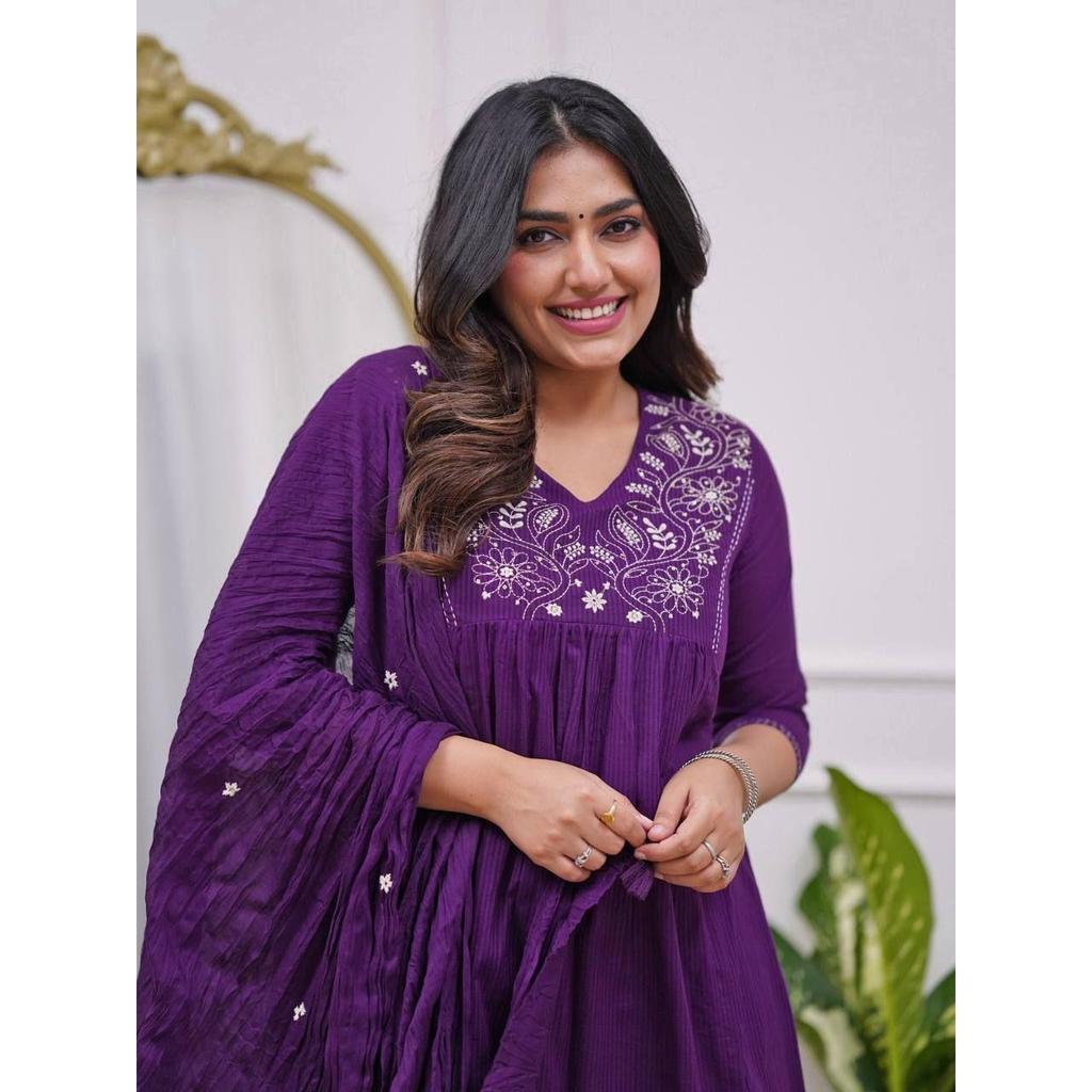 Женский вискозный вышитый расклешенный курти с брюками и комплектами дупатты