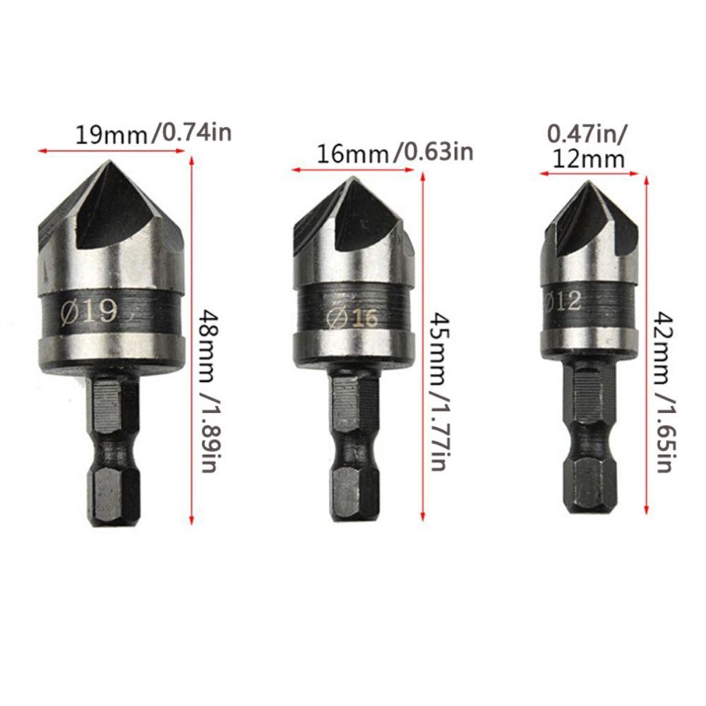 Flute Drill Bit Set Hex Shank Woodworking Countersink Chamfering Tool Chamfer Drill Bit Hole Opener