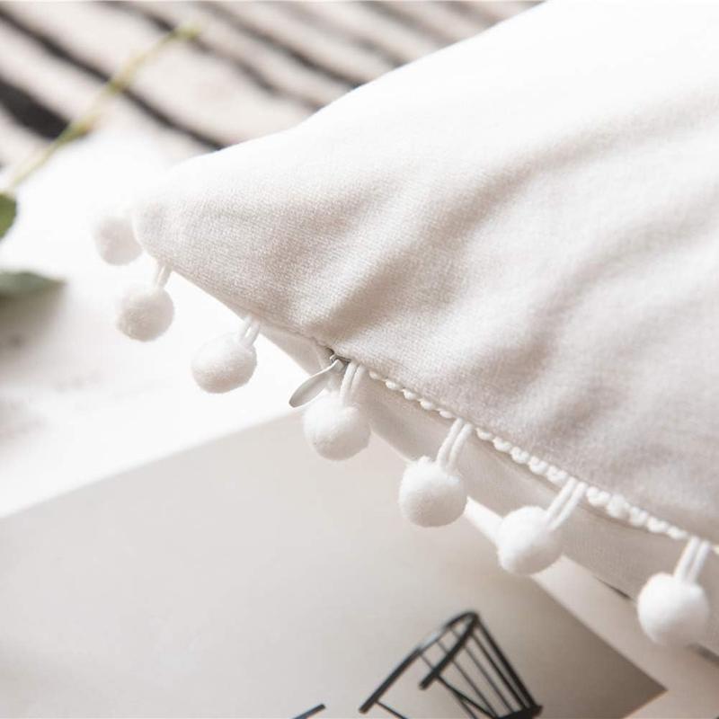 Белый Помпон Наволочка Декоративная Однотонный Вельвет 30x50см 45x45см 50x50см Бохо Декоративные Наволочки Чехол для Подушки Cuscini Divano