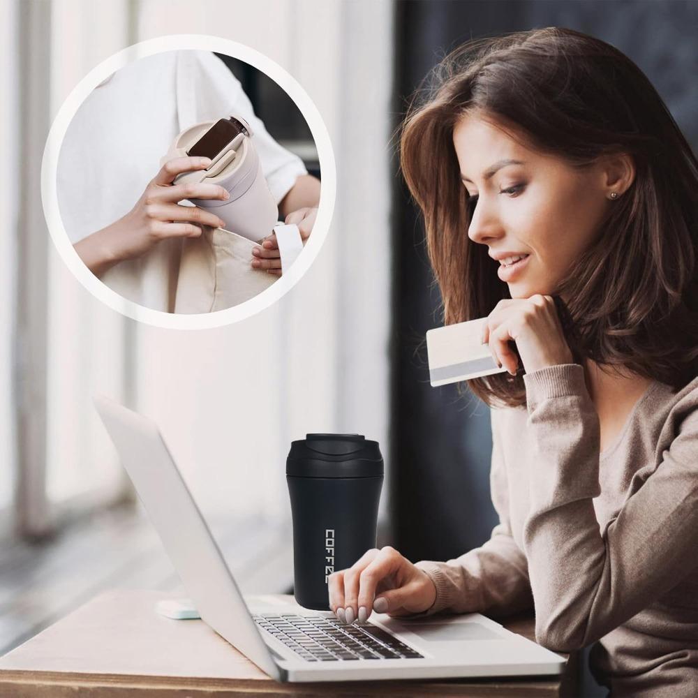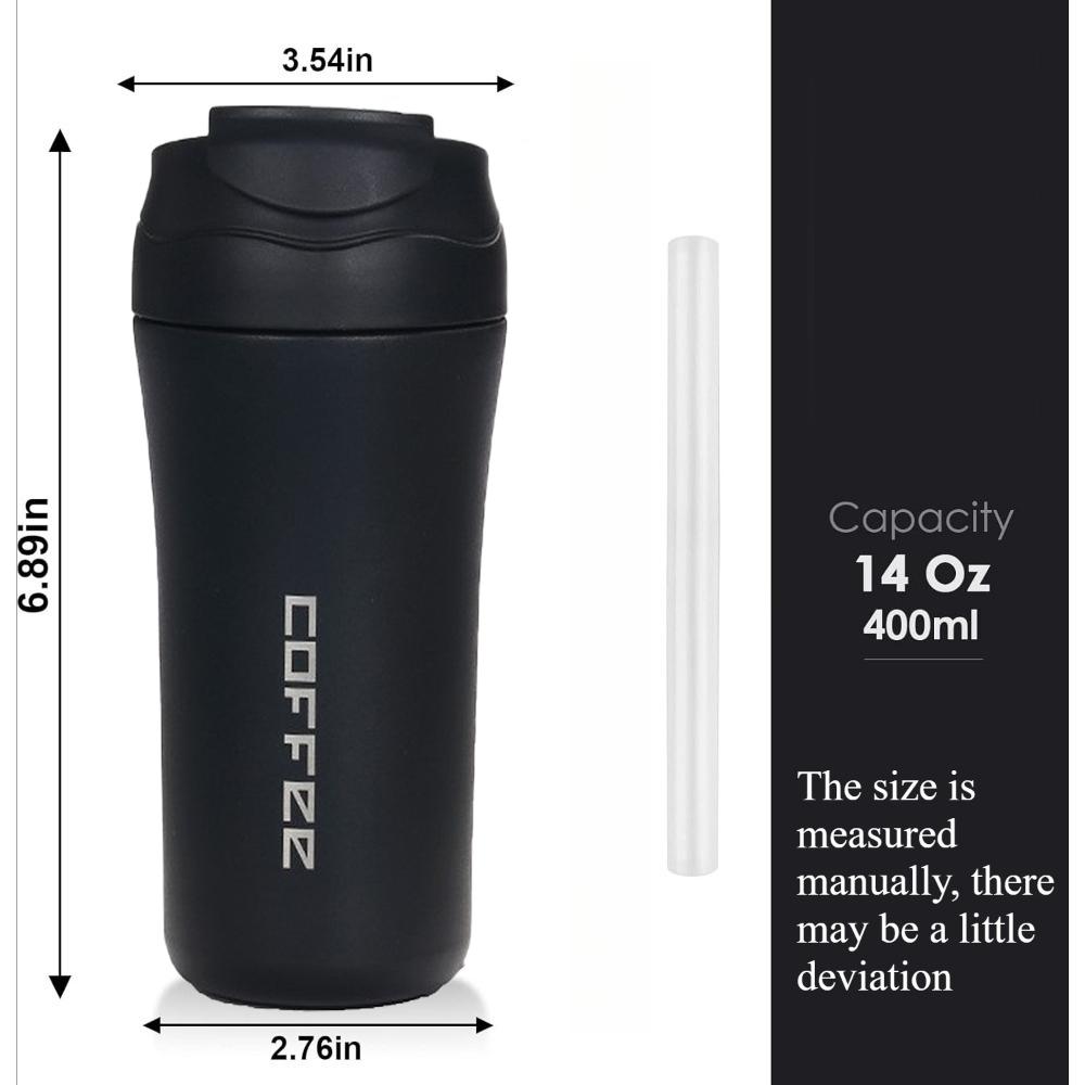 14 унций Изолированная дорожная кофейная кружка из нержавеющей стали Непроливающаяся дорожная кружка с соломинкой Многоразовая посуда для горячих и холодных напитков