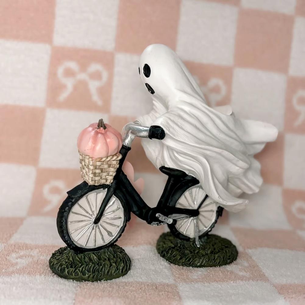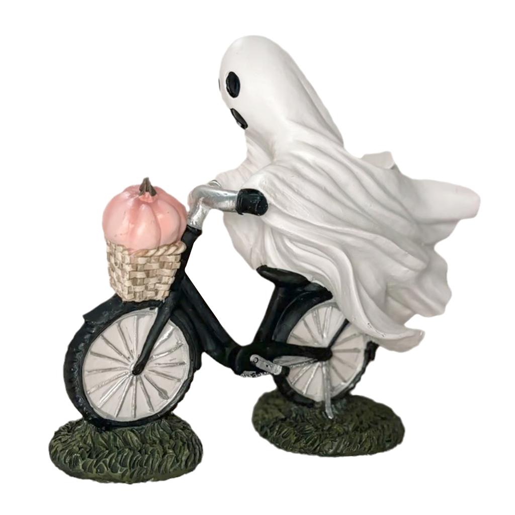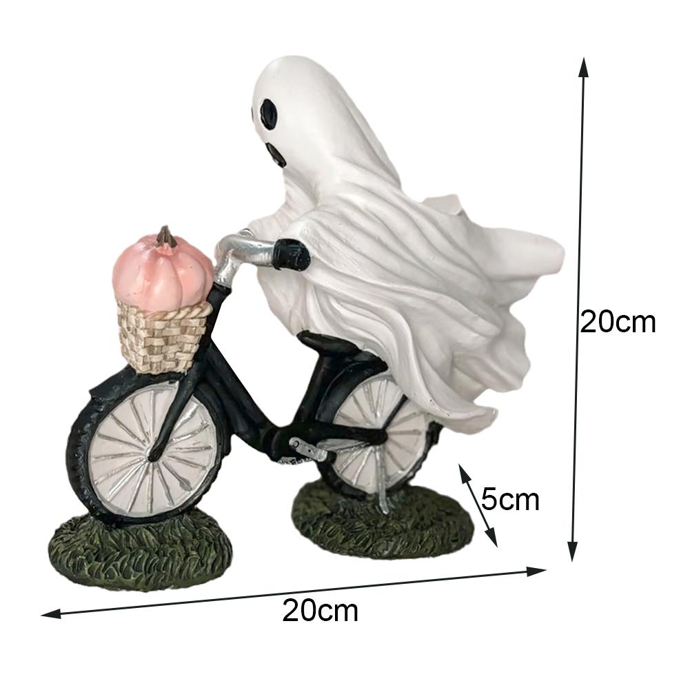 Призрачный велосипедист с розовой тыквой Хэллоуин Призрачный велосипед Настольное украшение Розовая тыква Велосипедная поездка Фигурка