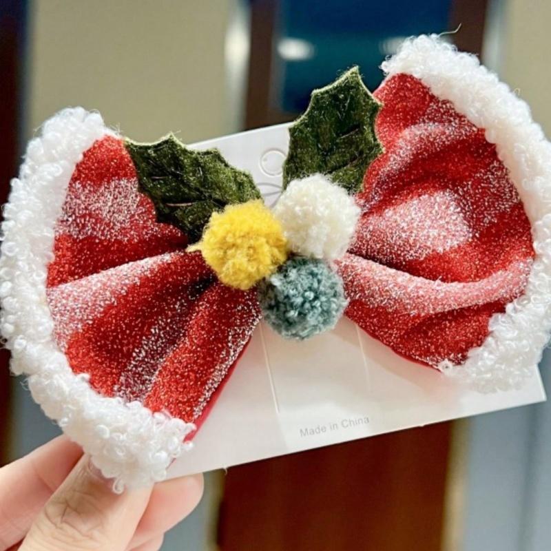 1 шт. Рождественская свежая заколка-бант-бабочка, в сочетании с шариком из овечьей шерсти, милые рождественские аксессуары для волос
