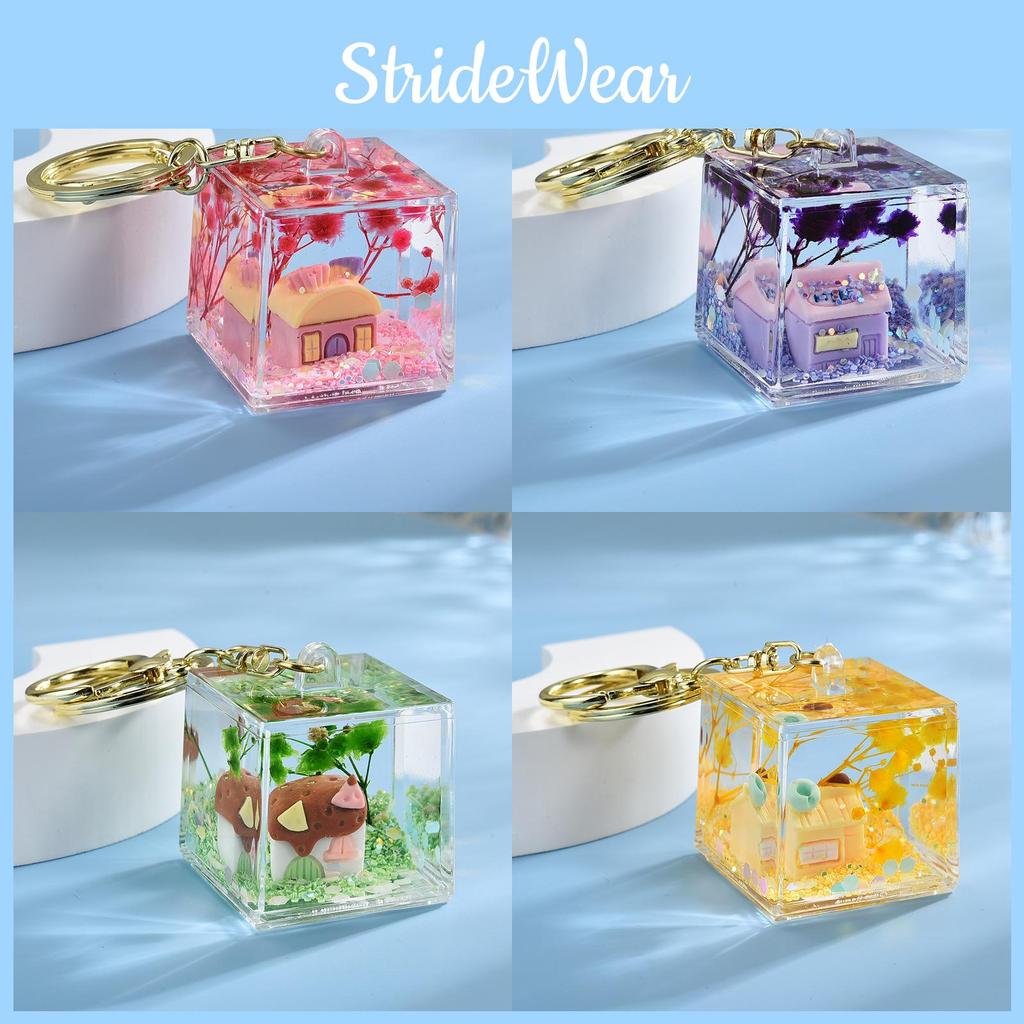 This acrylic keychain features a sand-in-oil flowing design, with a lightweight and durable construction. It includes a gold-tone clasp and a square bottle-shaped charm, suitable for use as a backpack, car, or key holder. Ideal for gifting during festivals like Valentines Day or Qixi, it offers a charming decorative touch. Wipe with a damp cloth to maintain its appearance.