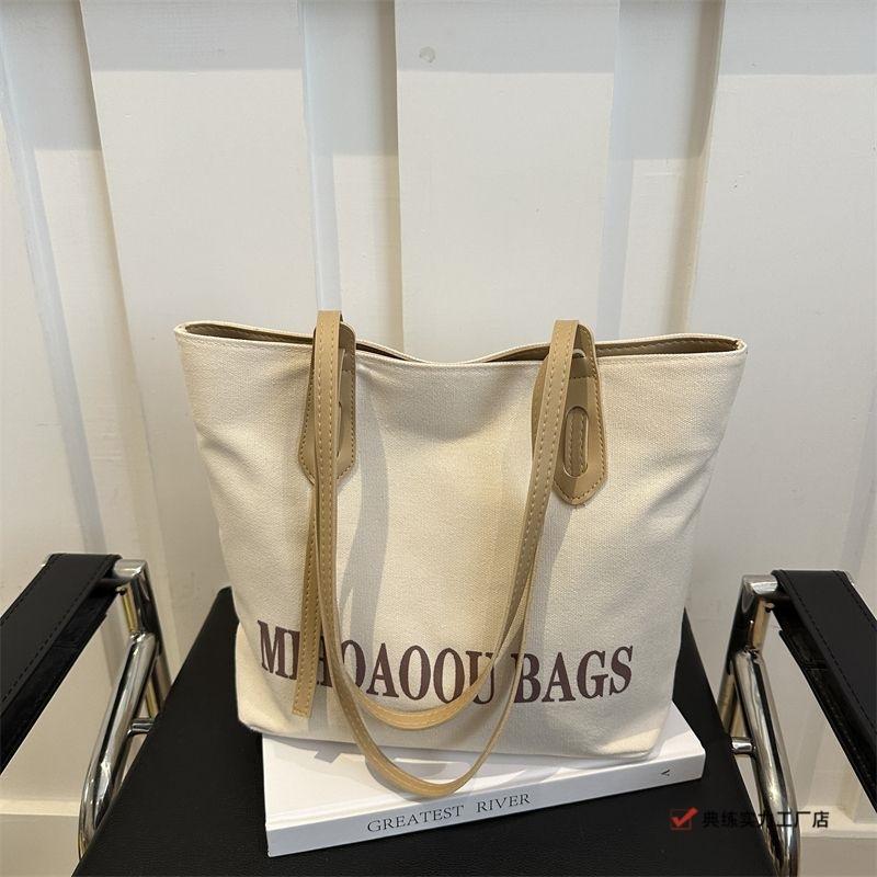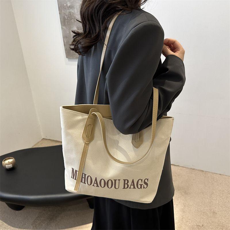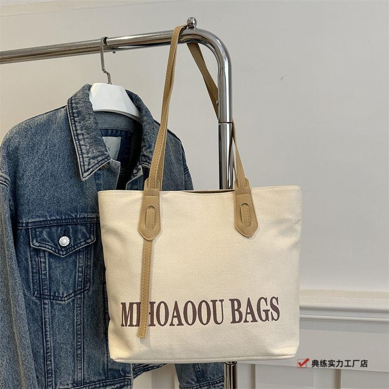 Large capacity canvas bag, women's new autumn casual shoulder bag, college student class commuter bag, tote bag