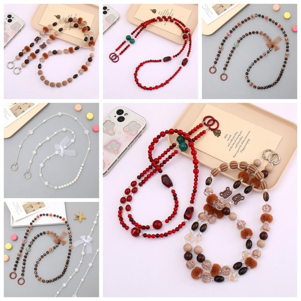 Beads Mobile Phone Lanyard Bowknot Phone Neck Straps Crossbody Phone Strap Lanyard Patch