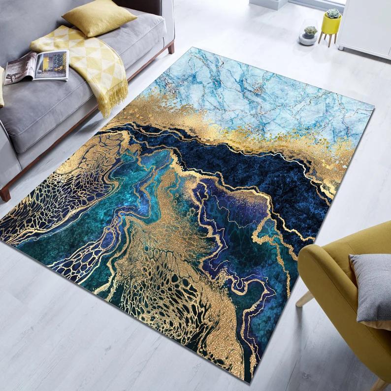 Ковер Голубой Мрамор Мраморный Ковер Абстрактный Ковер Ковер для Гостиной Современный Нескользящий Ковер, Эстетичный Ковер Ковер для Зоны Ковер для Спальни Домашнее Украшение