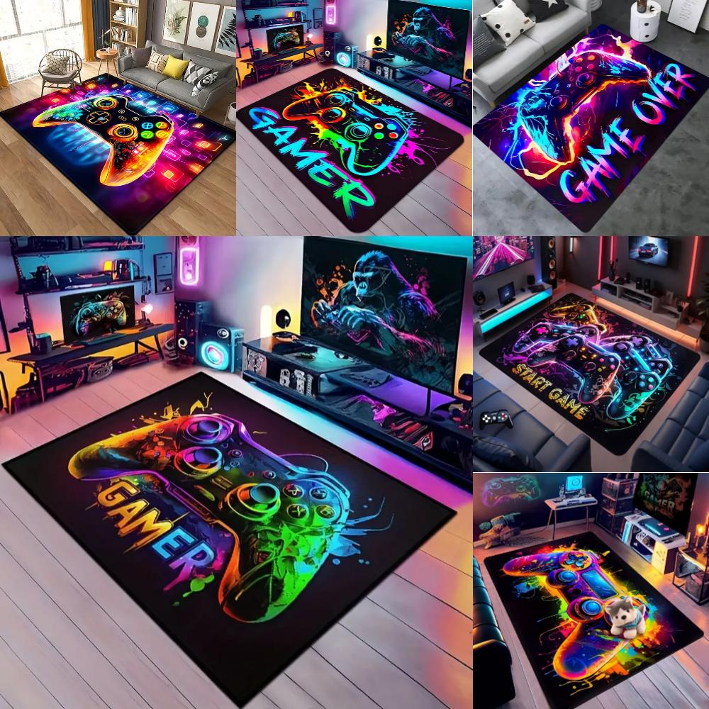 Яркий 3D коврик для пола с тематикой геймпада, прочный ковер для комнаты мальчика, декор для мужской берлоги, нескользящий коврик для игровой комнаты, спальни, жилого пространства