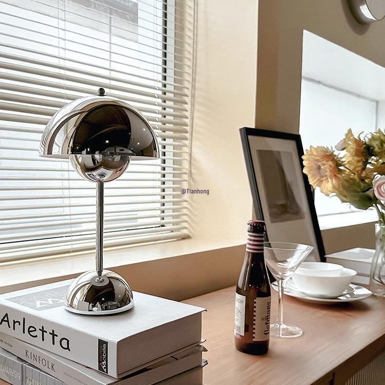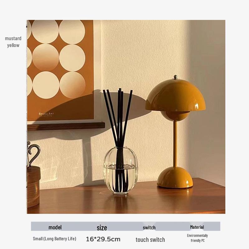 Скандинавская ретро настольная лампа «Бутон цветка» с беспроводной зарядкой для спальни или кабинета