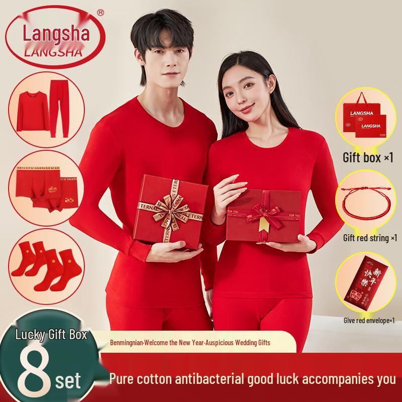 Langsah Мужское термобелье из чистого хлопка красного цвета, подарочный набор на удачу — купить товар онлайн с бесплатной доставкой по всему миру!