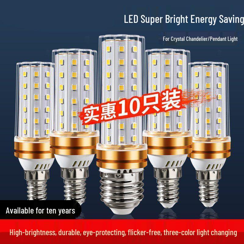 Сверхъяркая энергосберегающая светодиодная вкручивающаяся лампа-кукуруза для гостиной и спальни - Белый, теплый и трехцветный варианты