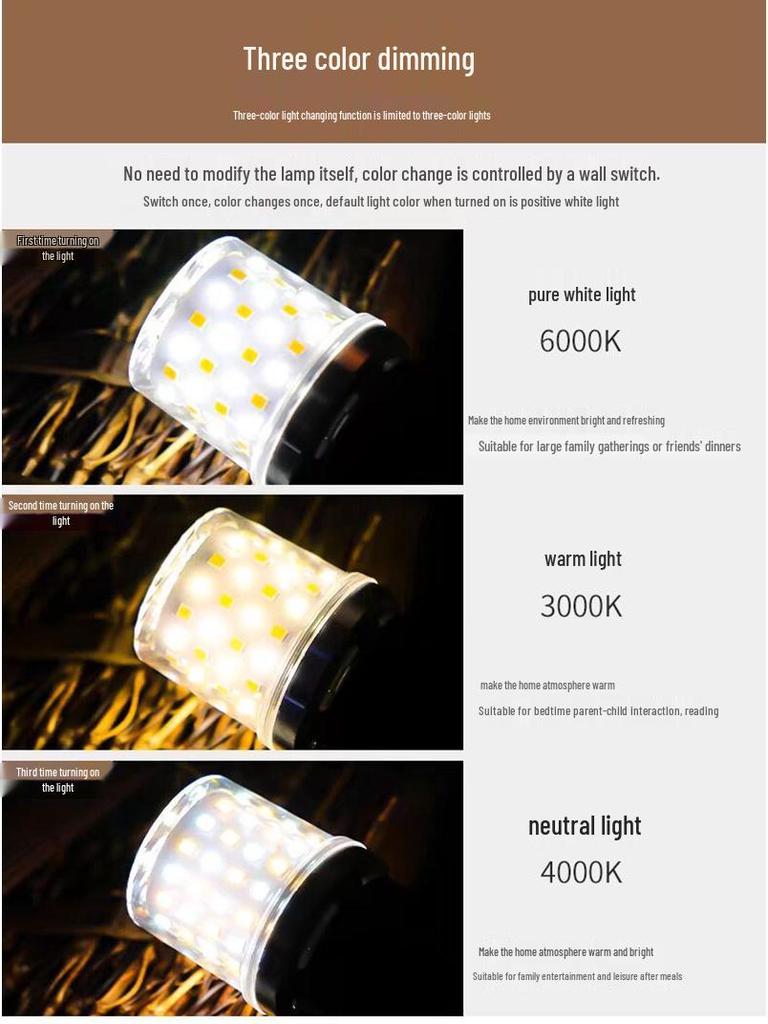 Super Bright LED Energy-Saving Screw-In Light Bulb - E27/E14 Tri-Color Corn Light