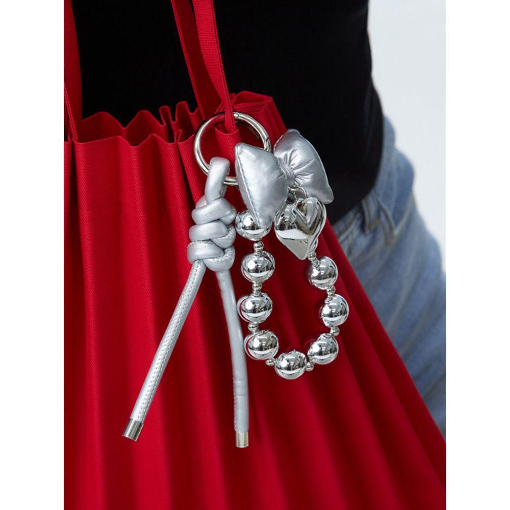 dmoment Shiny Charm Loop_ Silver Heart Ribbon Charm Key Holder Bag Charm