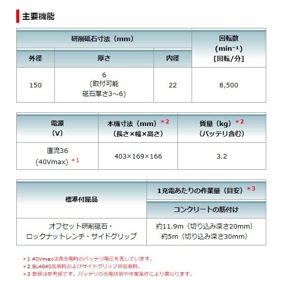 Makita GA034GZ 150mm Rechargeable Disc 40Vmax and Case Sold Grinder, (Battery, Charger, Separately)