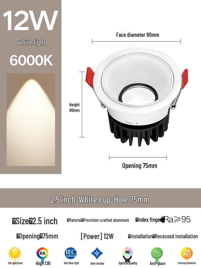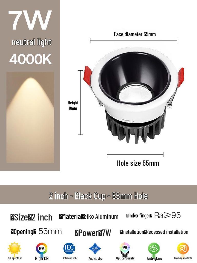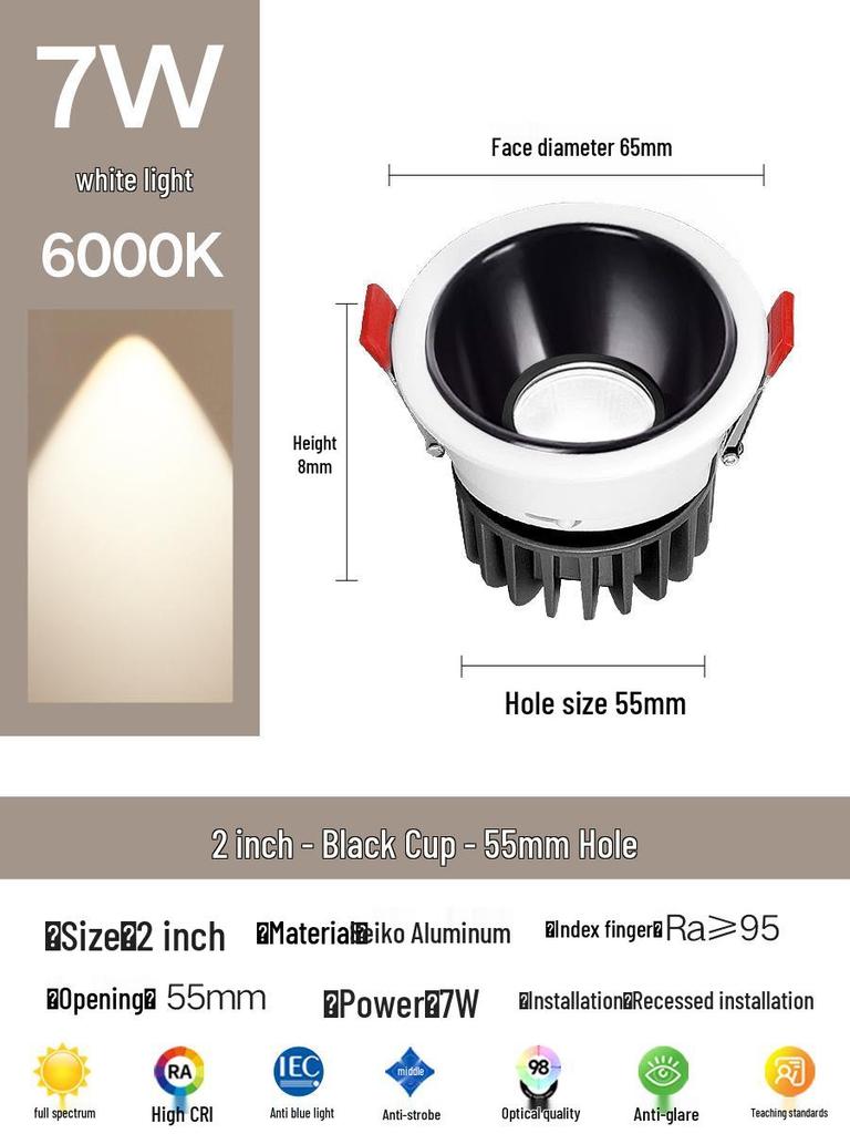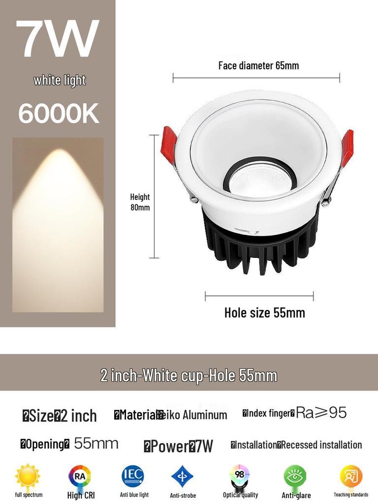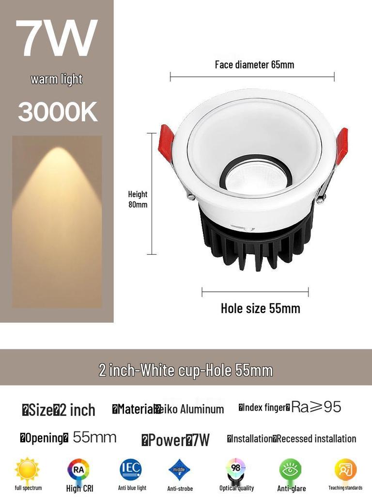 Compact Anti-Glare Recessed Ceiling Spotlight: Full Spectrum Wall Wash Light for Living Room