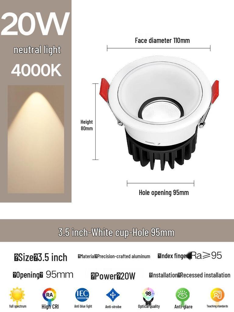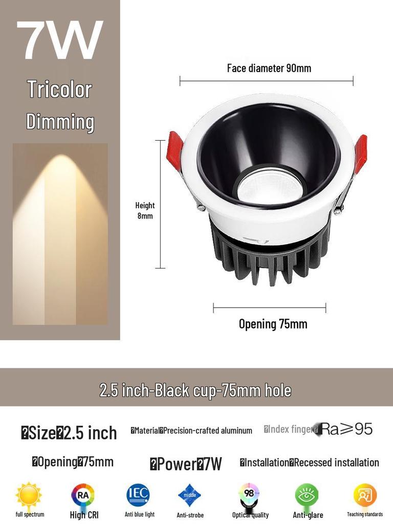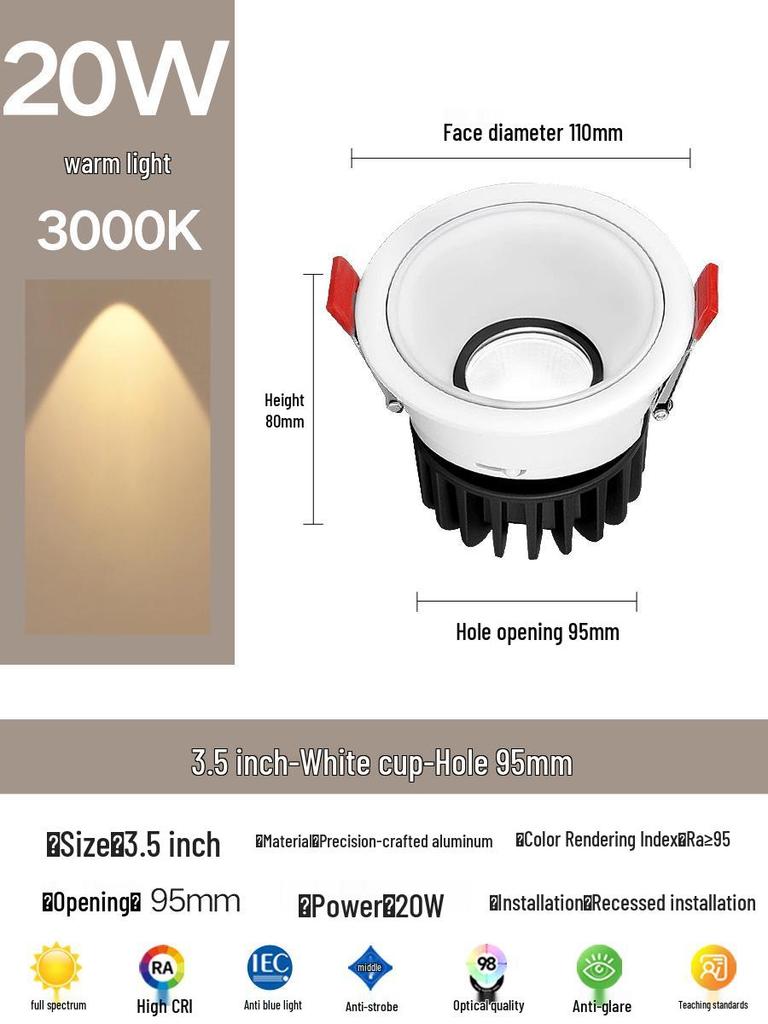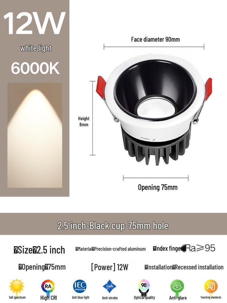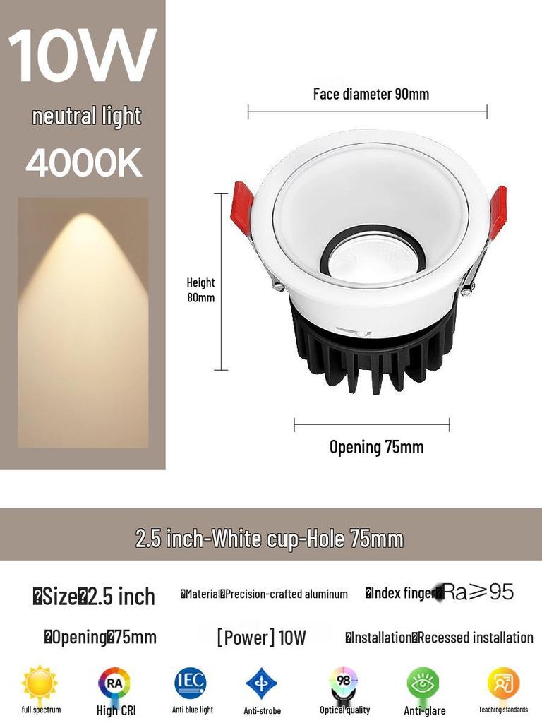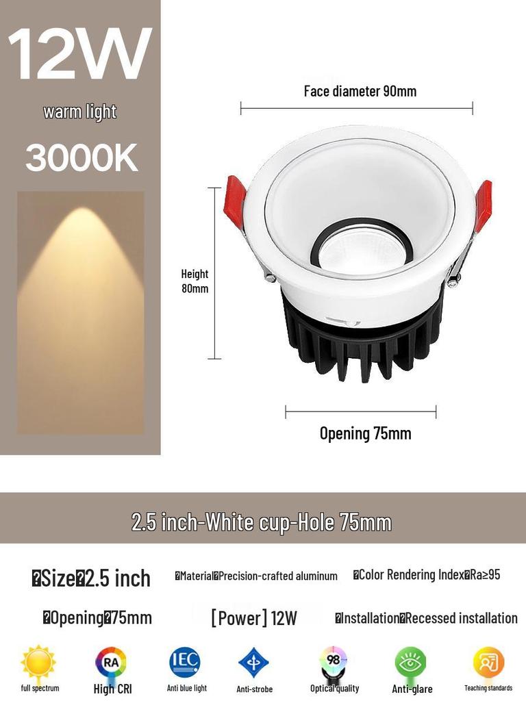 Compact Anti-Glare Recessed Ceiling Spotlight: Full Spectrum Wall Wash Light for Living Room