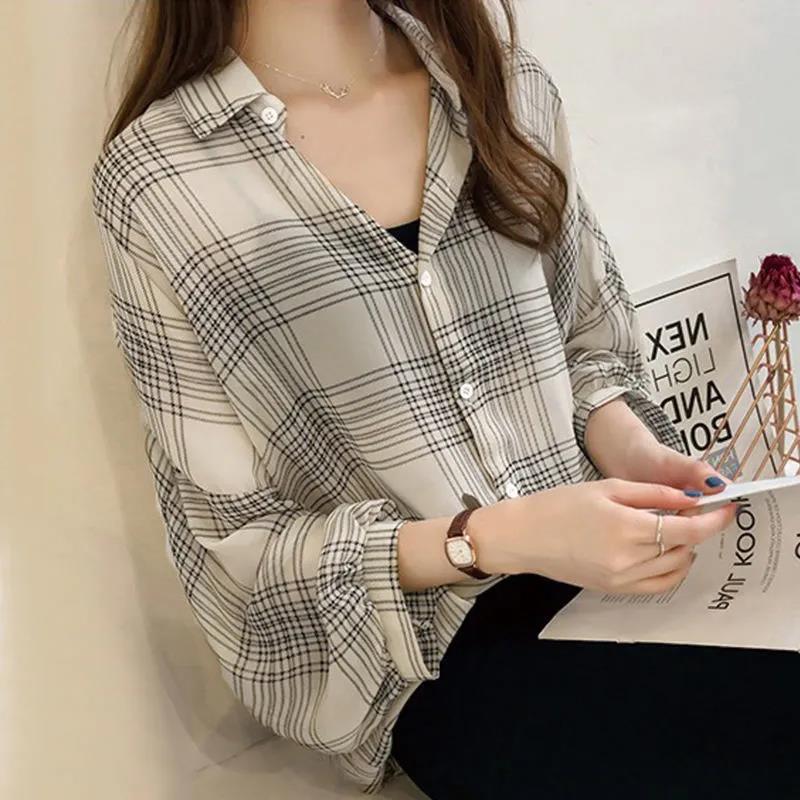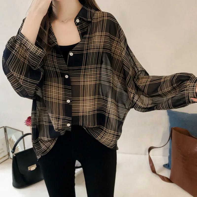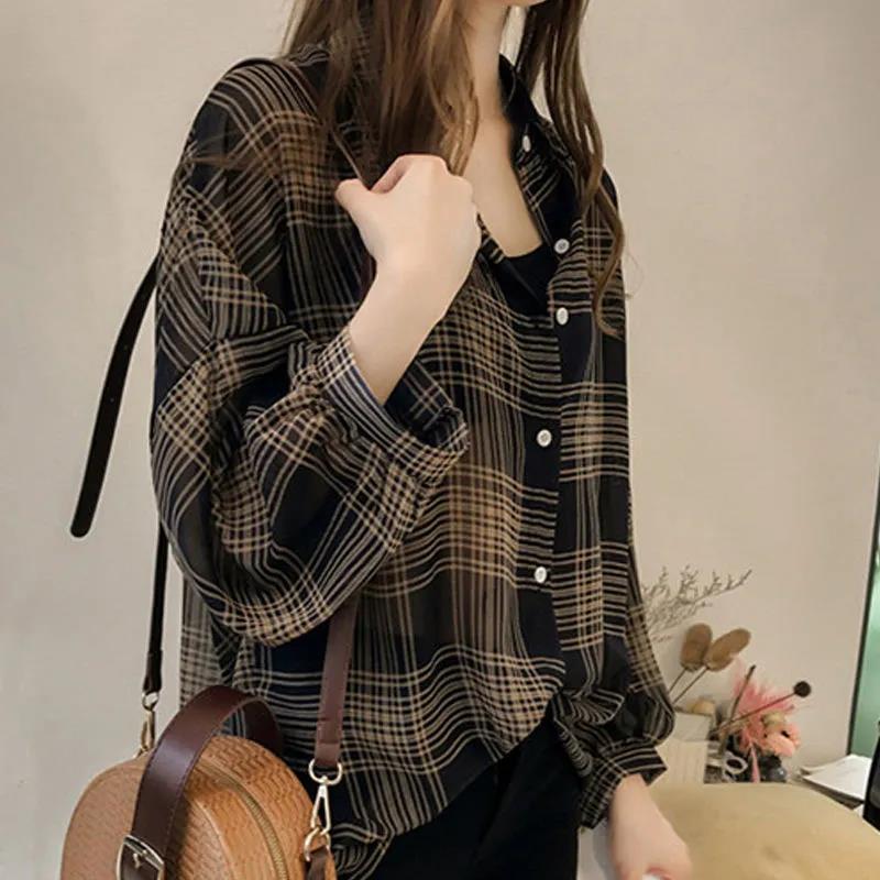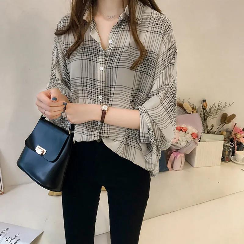 Новая модная летняя женская солнцезащитная одежда, шифоновая рубашка, клетчатая рубашка в стиле ретро, топ, блузка, женская