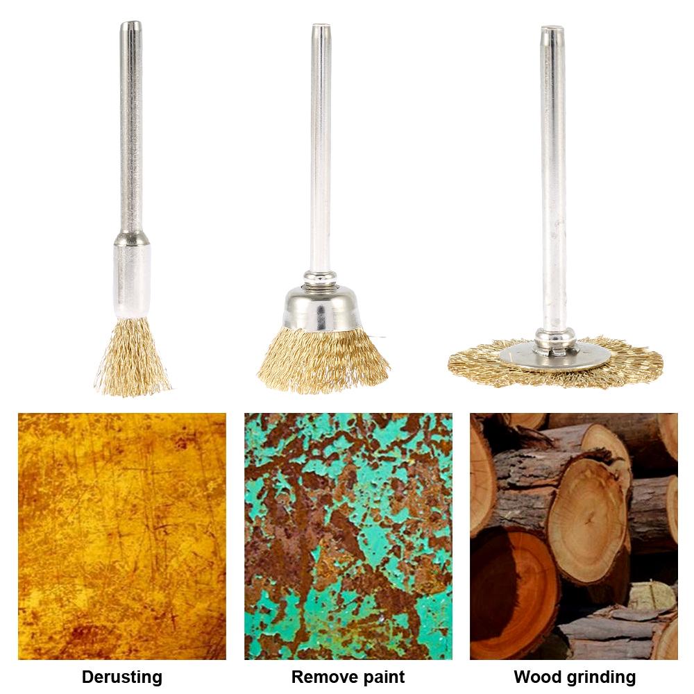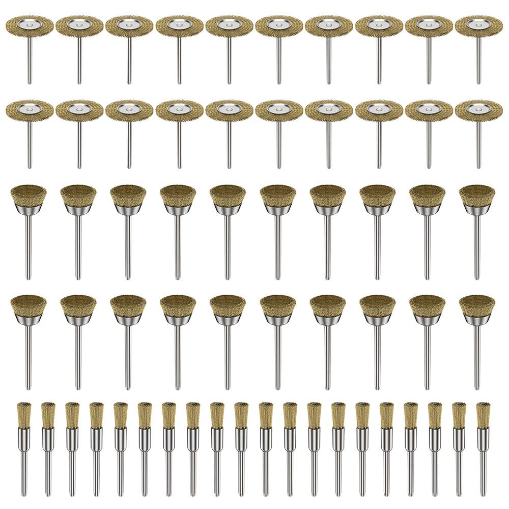 20-60 шт. Латунная проволочная щеточная насадка для роторного инструмента Dremel, сверла, для удаления ржавчины с металла, полировки, зачистки, Т-образная щеточная насадка 2025