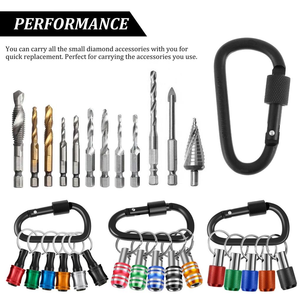 19 шт. держатель для бит-отверток удлинитель брелок адаптер для винтов с карабином сверло 1/4 дюйма шестигранный хвостовик подвесной инструмент для переноски