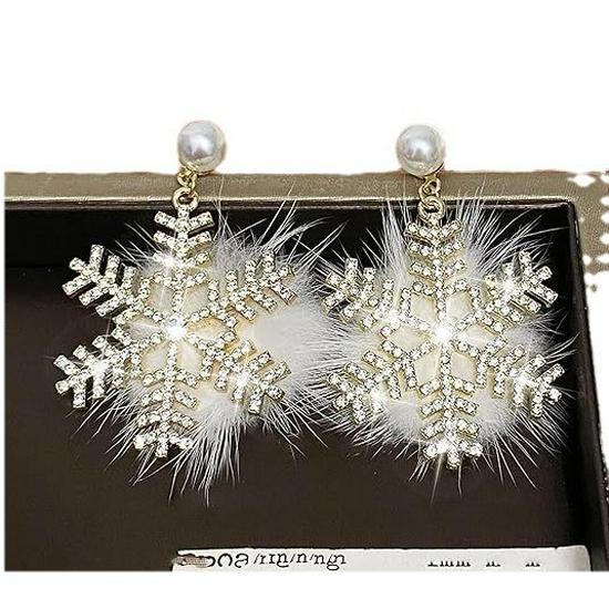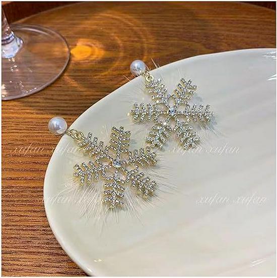 Рождественские серьги-подвески со цирконами и жемчугом в виде снежинок для женщин 2024