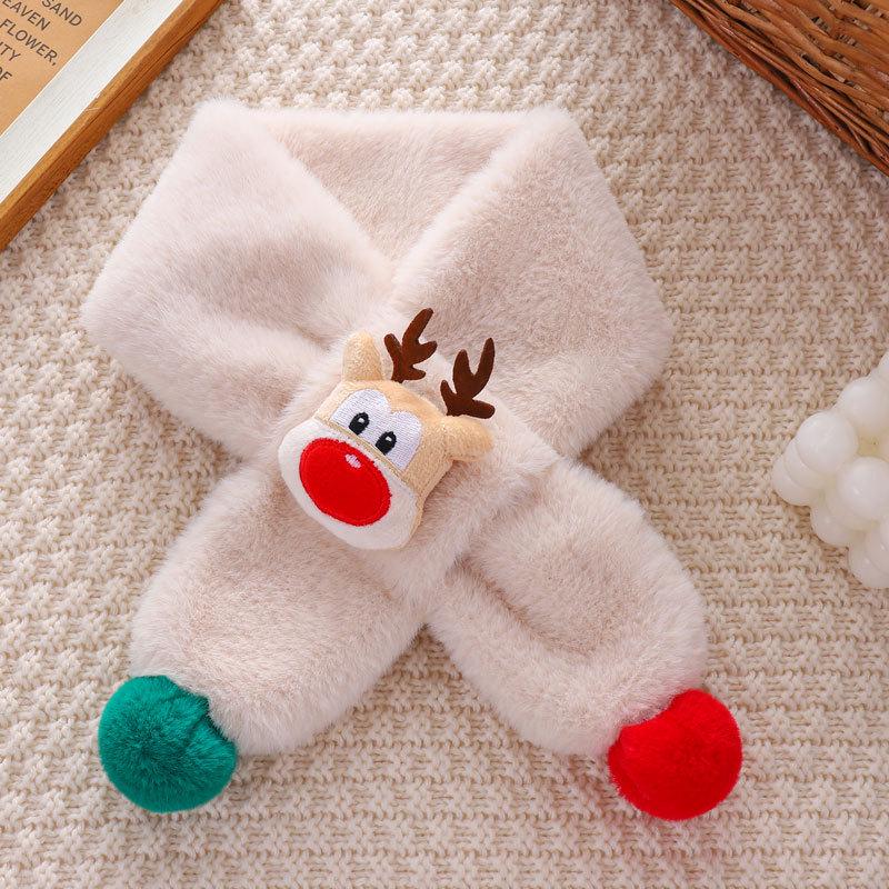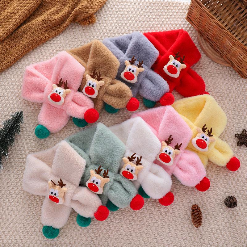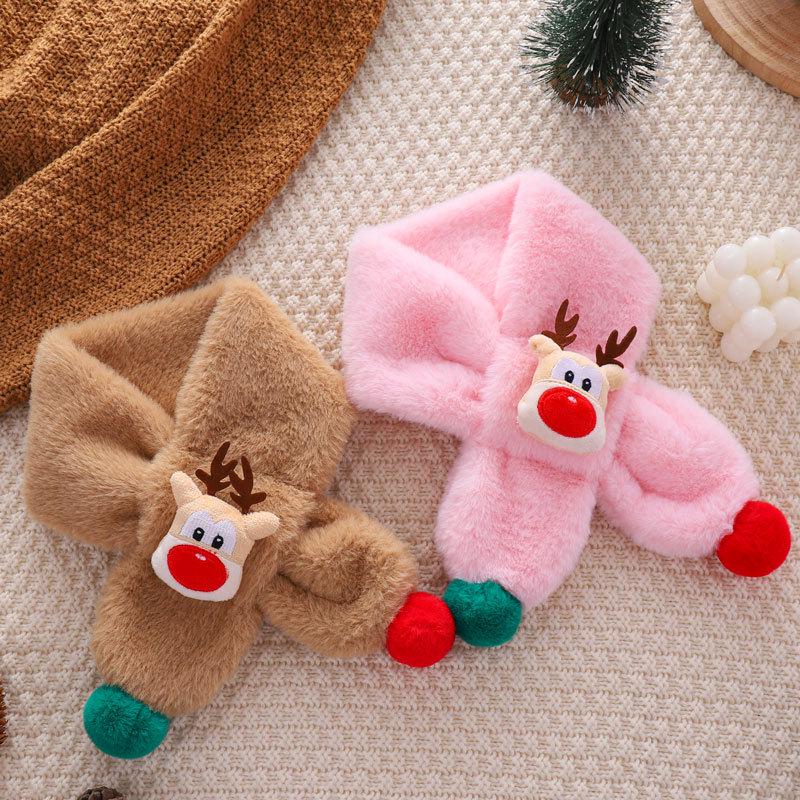 Детский мультяшный шарф с оленями - Имитация кроличьего меха, Теплая зимняя манишка для малыша.