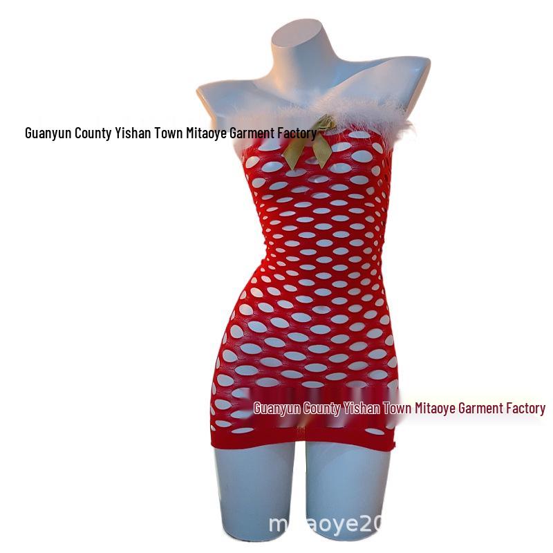 Seductive Red Fishnet Christmas Dress Lingerie with Hip-Hugging Stockings — купить товар онлайн с бесплатной доставкой по всему миру!