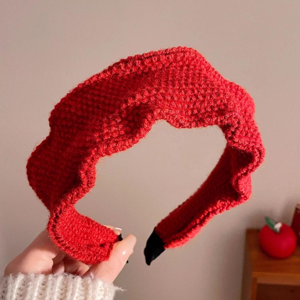 2024 Красная вязаная плиссированная повязка на голову с высокой тульей из шерсти для женщин – Праздничная коллекция