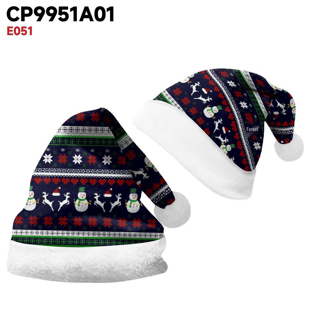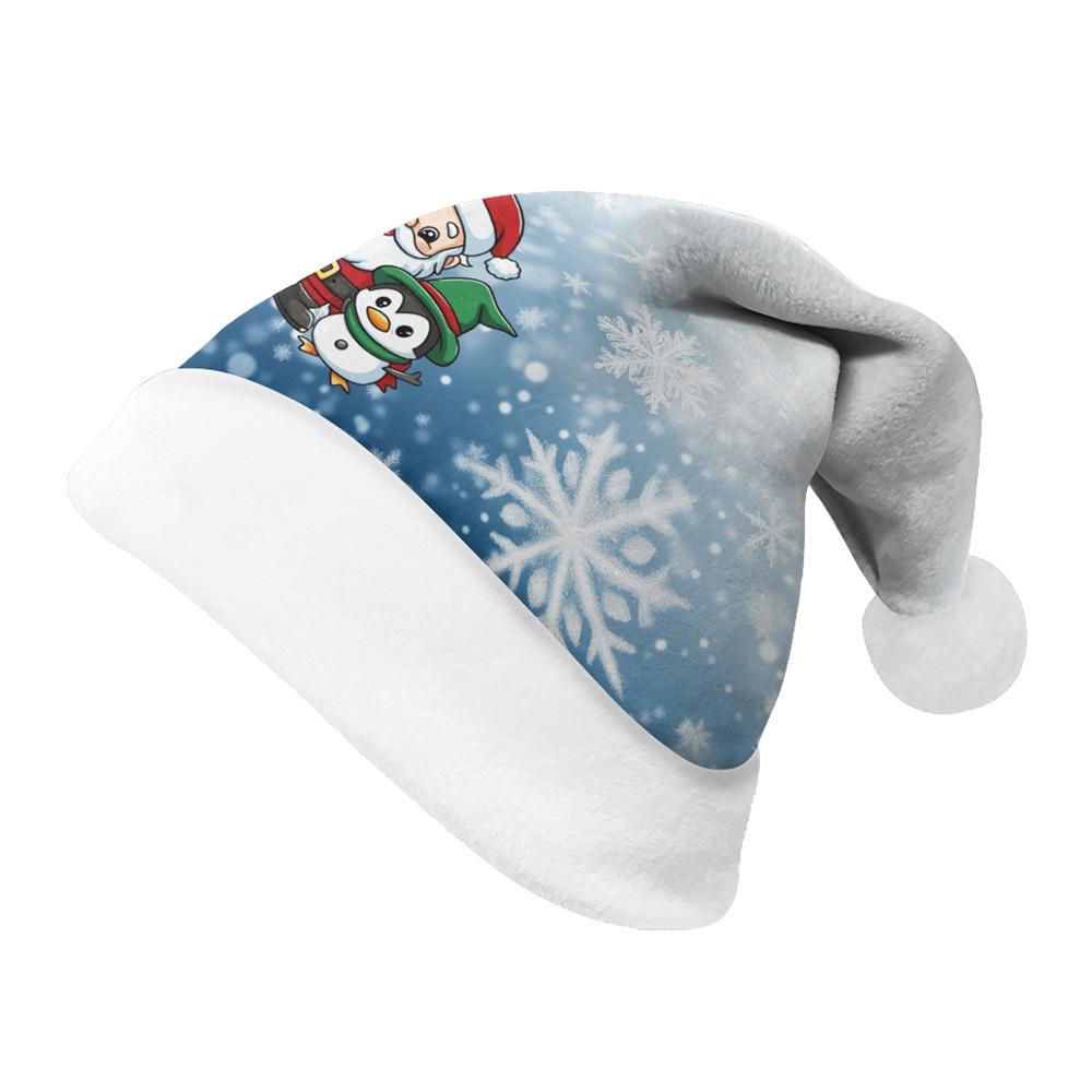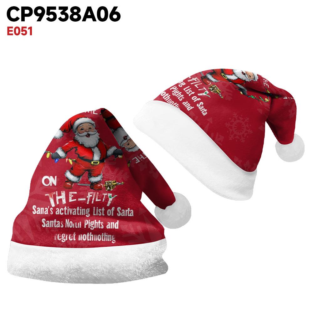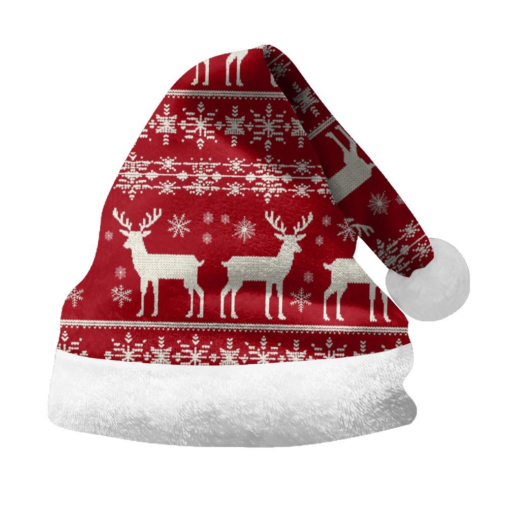 2024 Santa Hat: Double-Sided Plush with Velvet Print for Adults & Children