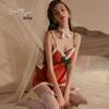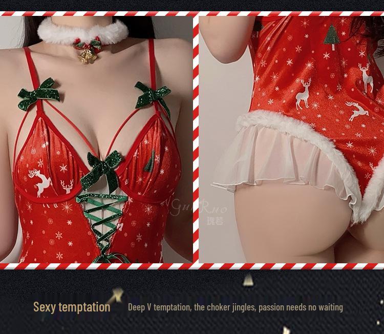 Velvet Bow Christmas Lingerie Bodysuit Set with Deep V Neck