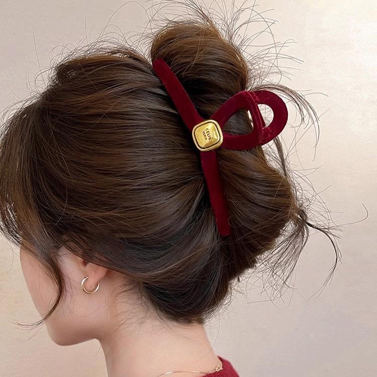 2023 Christmas Red Velvet Large Claw Hair Clip for Women