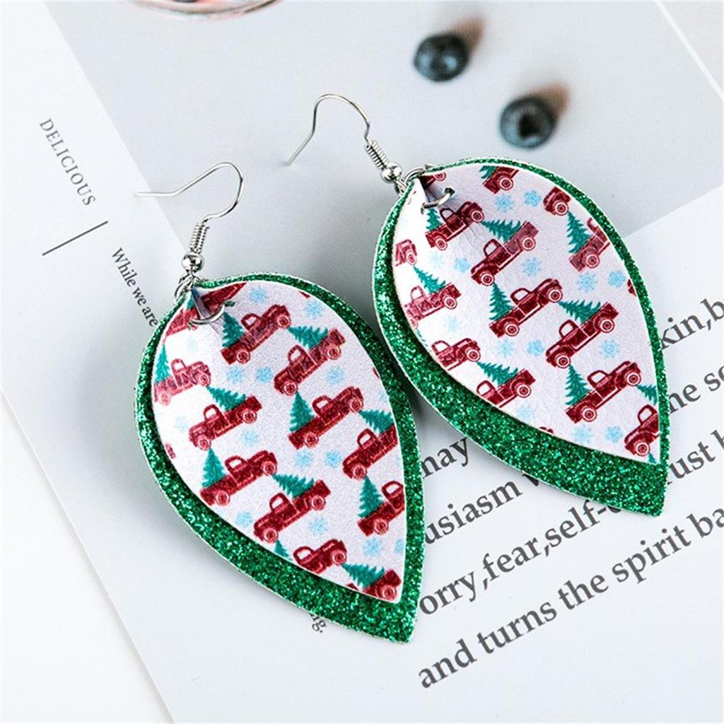 Двусторонние серьги-листья из кожи с пайетками в виде рождественской елки и машины