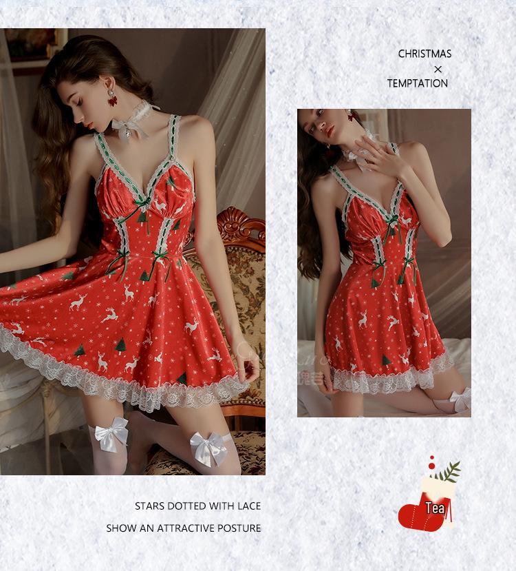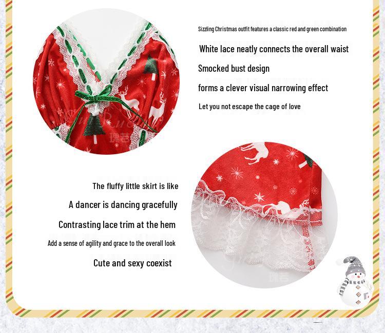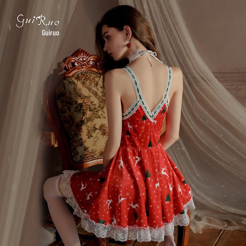 Guiruo Женский Сексуальный Бархатный Рождественский Набор Ночной Сорочки - Страстное Нижнее Белье с Глубоким Вырезом Большого Размера
