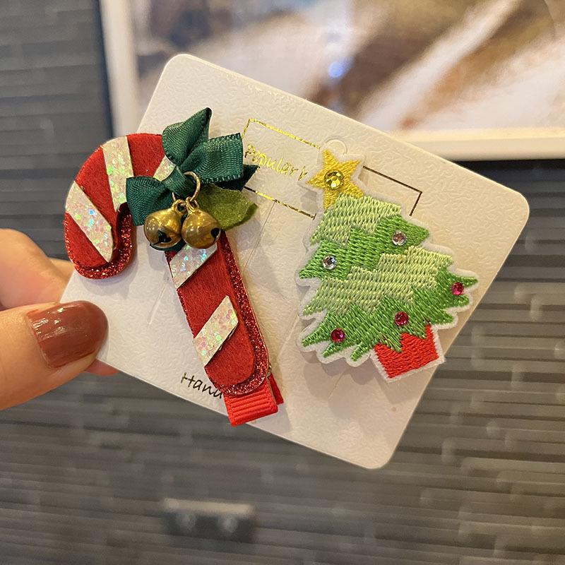 Christmas Hair Accessories - Red & Green Girls' Side Clips: Festive Duckbill Headwear for Autumn/Winter