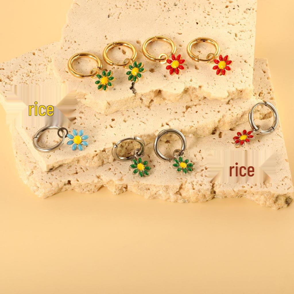 Cross-border European American Colorful Daisy Flower Stud Earrings - Simple Sweet Christmas Design