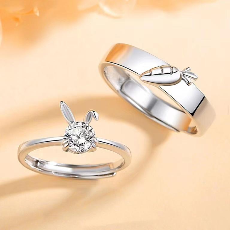 Милые кольца для пары в виде кроликов Минцзе: Регулируемая пара для мужчин и женщин, идеально подходит для подарков на дни рождения, Новый год и Рождество.