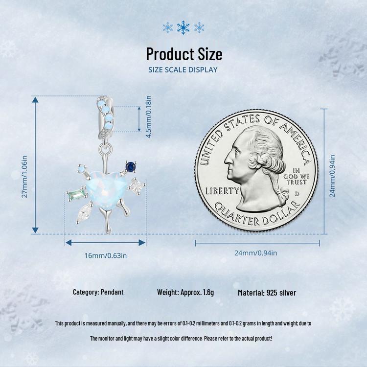 Yinziyun Sterling Silver Snowflake Heart Pendant Necklace - Romantic Winter Christmas Gift for Women