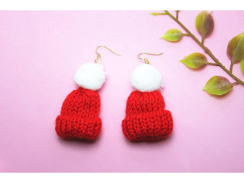 Мэнлэй Зимняя Шерстяная Шапка с Помпоном Серьги - Рождественские Украшения для Ушей